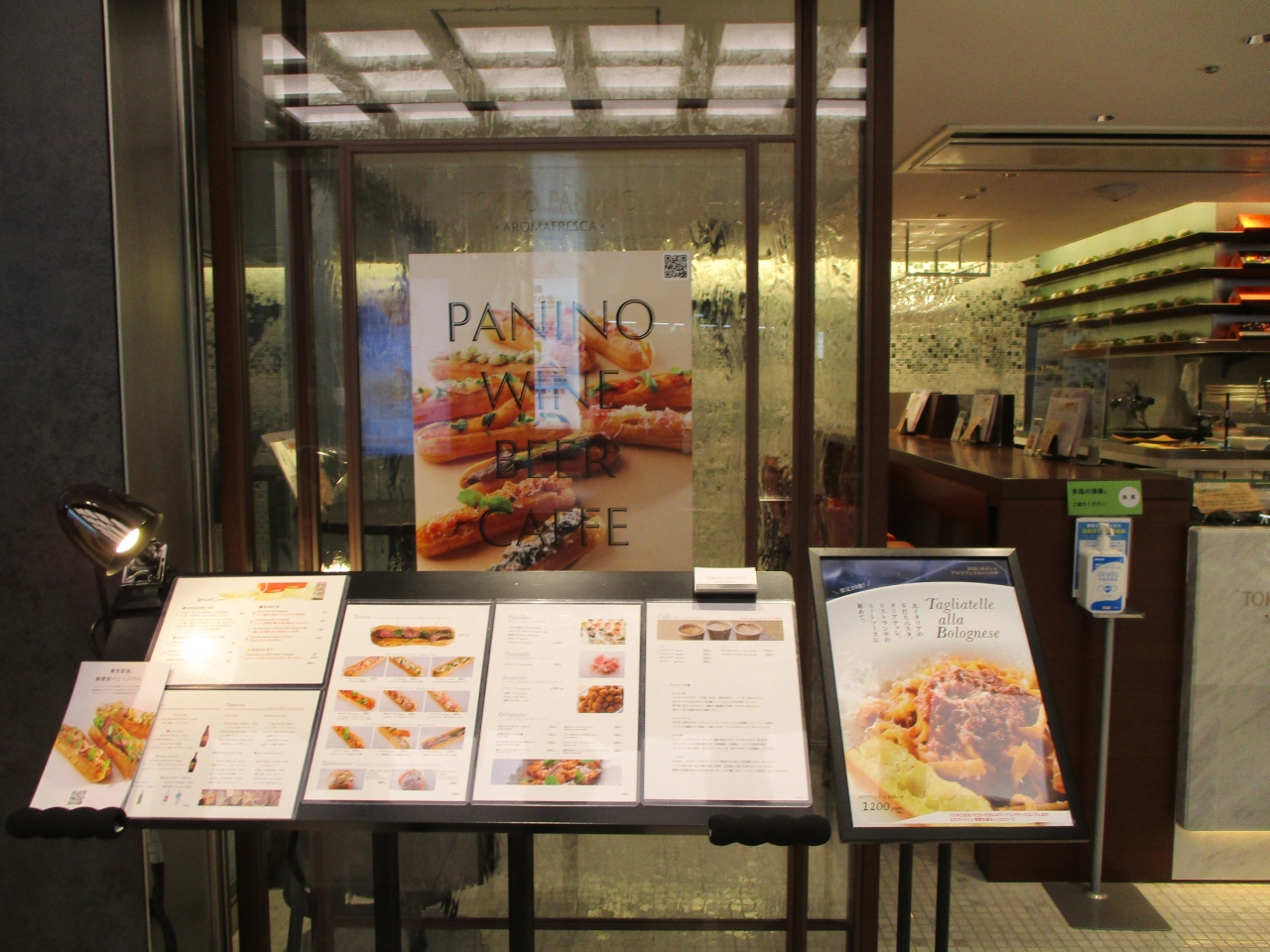 グランスタ東京1階の吹き抜けエリアにありました。テーブル席、カウンター席がありますが、席数は少なかった。イタリアを思い出して、メニューを見たら、パニーノだけでなく、イタリアのライスコロッケ「アランチーニ」があった。