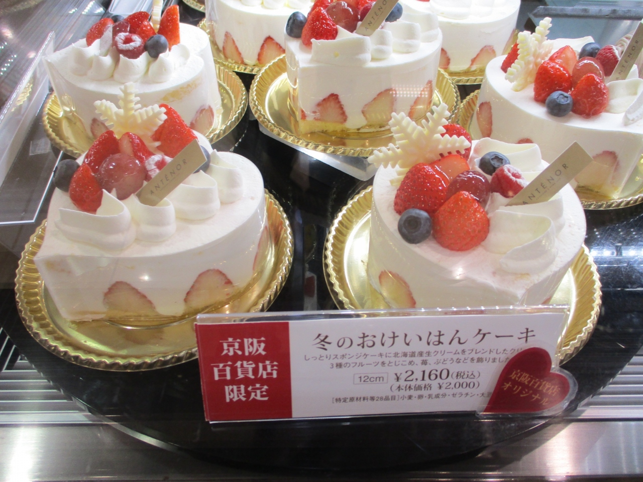 京阪百貨店くずはモール店の1階にお店があります。有名なケーキショップです。他店で何度か購入したことがあります。こちらのお店では「京阪百貨店限定 冬のおけいはんケーキ」がありました。特に大きな特徴はなさそうでしたが、おいしそうな生クリームのホールケーキでした。どうぶつのケーキもかわいくておいしそうでした。子どもが喜びそうです。