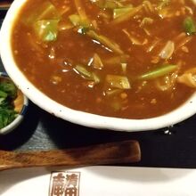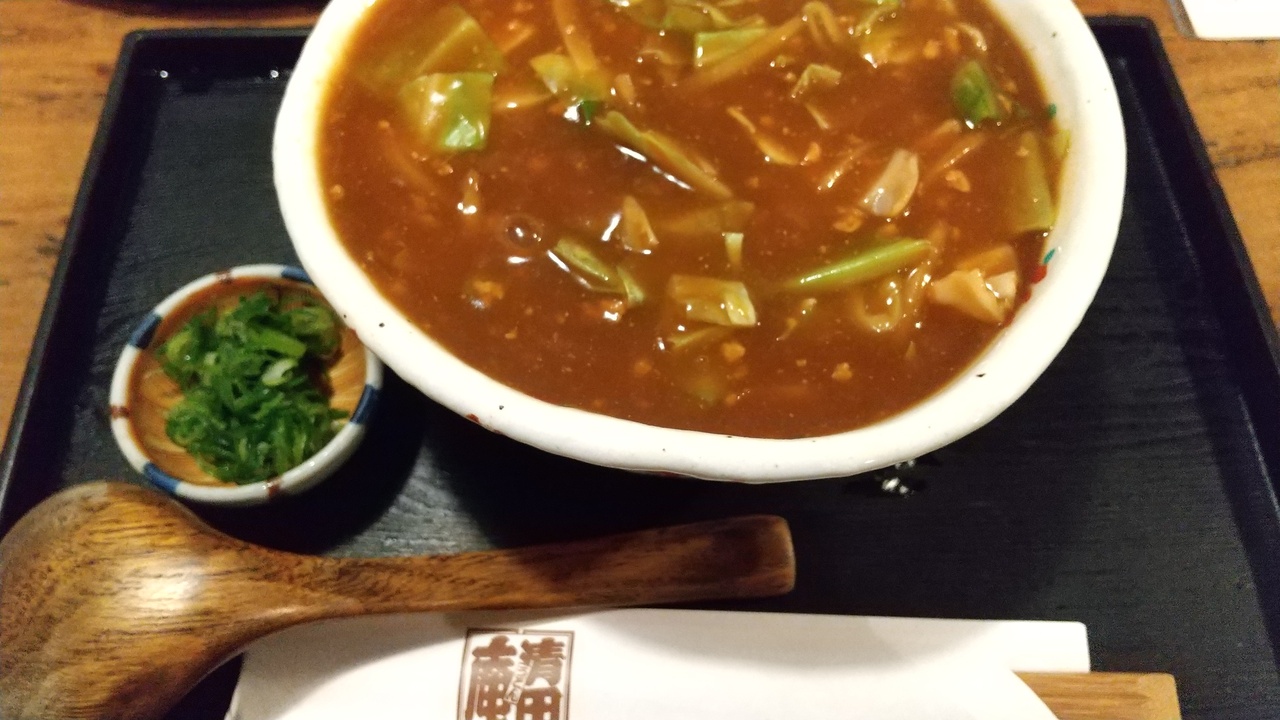 初めて夜に伺いましたが家族連れで賑わう店内。季節メニューで入り口に紹介してあった肉味噌餡掛けうどんにしました。甘めな肉味噌に千切り生姜が入り、キャベツの角切りが入ったうどん。初めての味わいでしたが、餡掛けが熱々で生姜が程よくきいて美味しく、体の芯から温まりました。