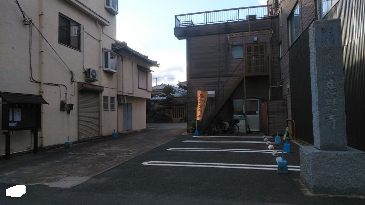 昔ながらの商店街が並ぶ通りにある寺院、入口は駐車場になっており、あまり目立たない印象だった。