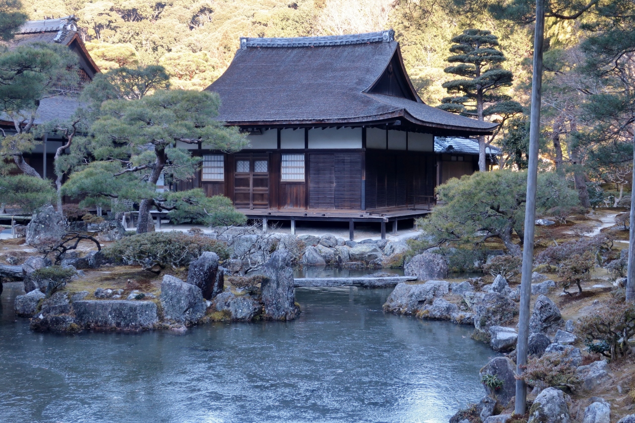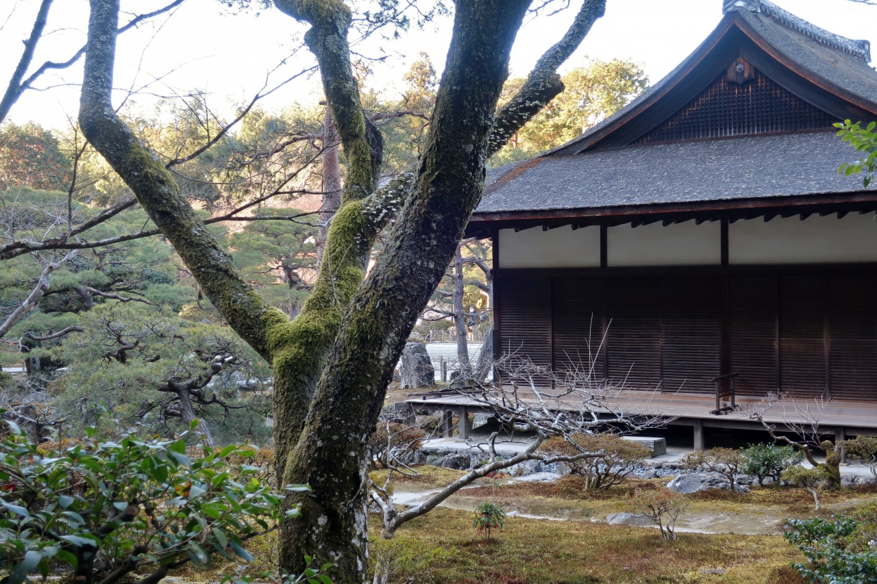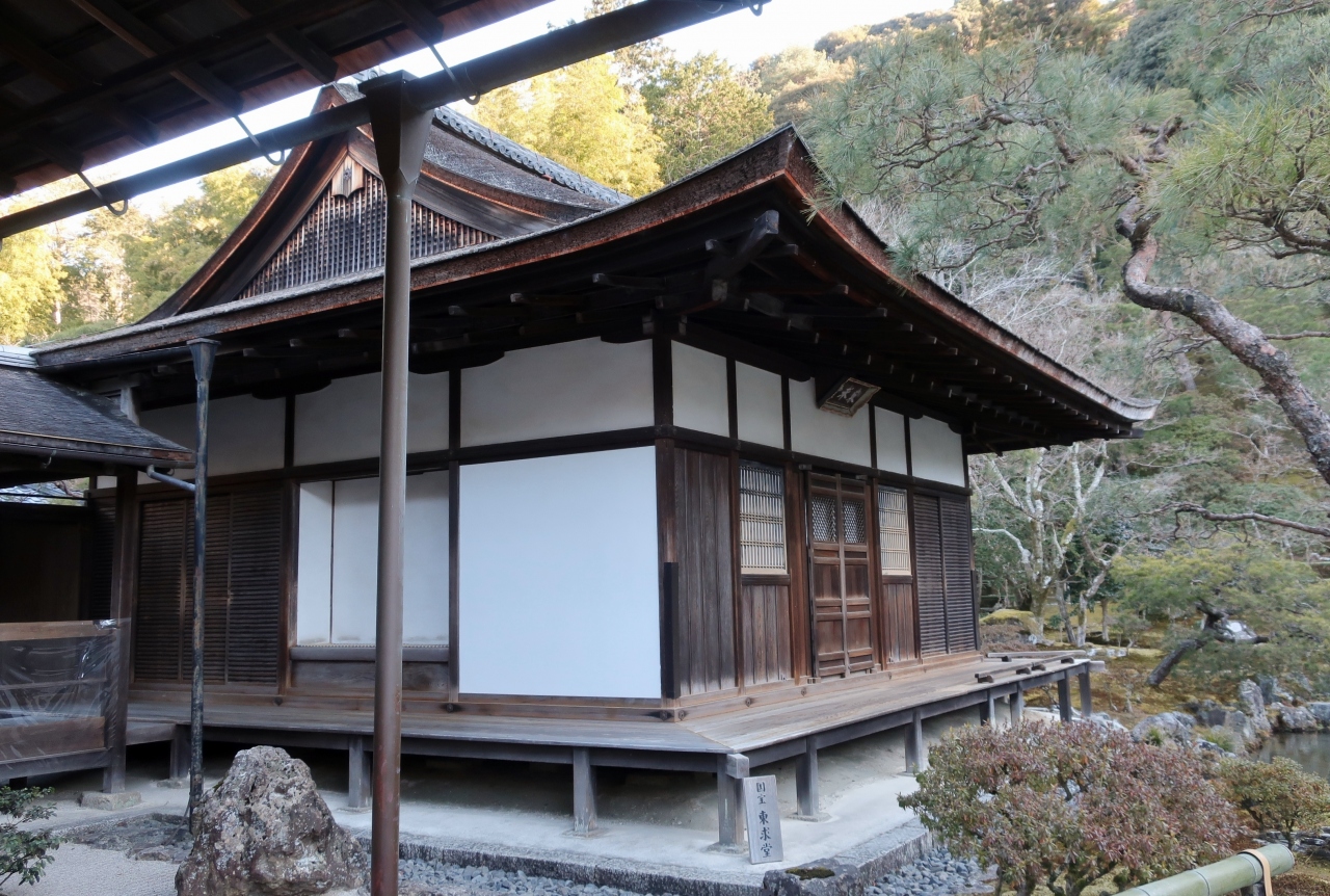 仏像をいただくお堂のような建物のように見えるが、実際、阿弥陀仏を祭った「阿弥陀堂」だという。方丈と隣接して建っているが、方丈が銀沙灘を前面に抱えて印象的な景色をつくっているのに比べ、東求堂は池や苔むした庭といった幽玄な美を求めている。対照的な二つの建物だ。