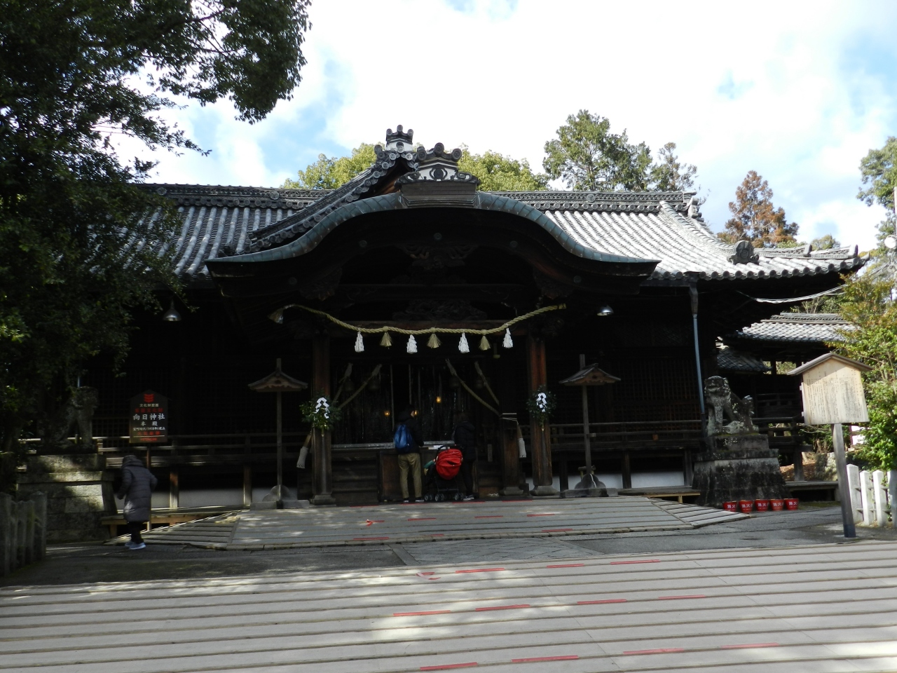 向日町北山に鎮座する奈良時代・養老2年(718)創建と伝わる格式ある神社です。西国街道沿いに建ち、石畳の坂道の参道が素晴らしい景観です。式内社で旧社格は府社で元々は同じ向日山に鎮座する「向神社」(上の社)、「火雷神社」(下の社)と別々の神社だったようです。火雷神社は中世に衰微して向神社が併催するようになったそうです。失礼ながら向日市にこれほど立派な神社があるとは思いませんでした。境内の本殿は応永25年(1418)建立の素晴らしい建築物で国の重要文化財に指定されています。