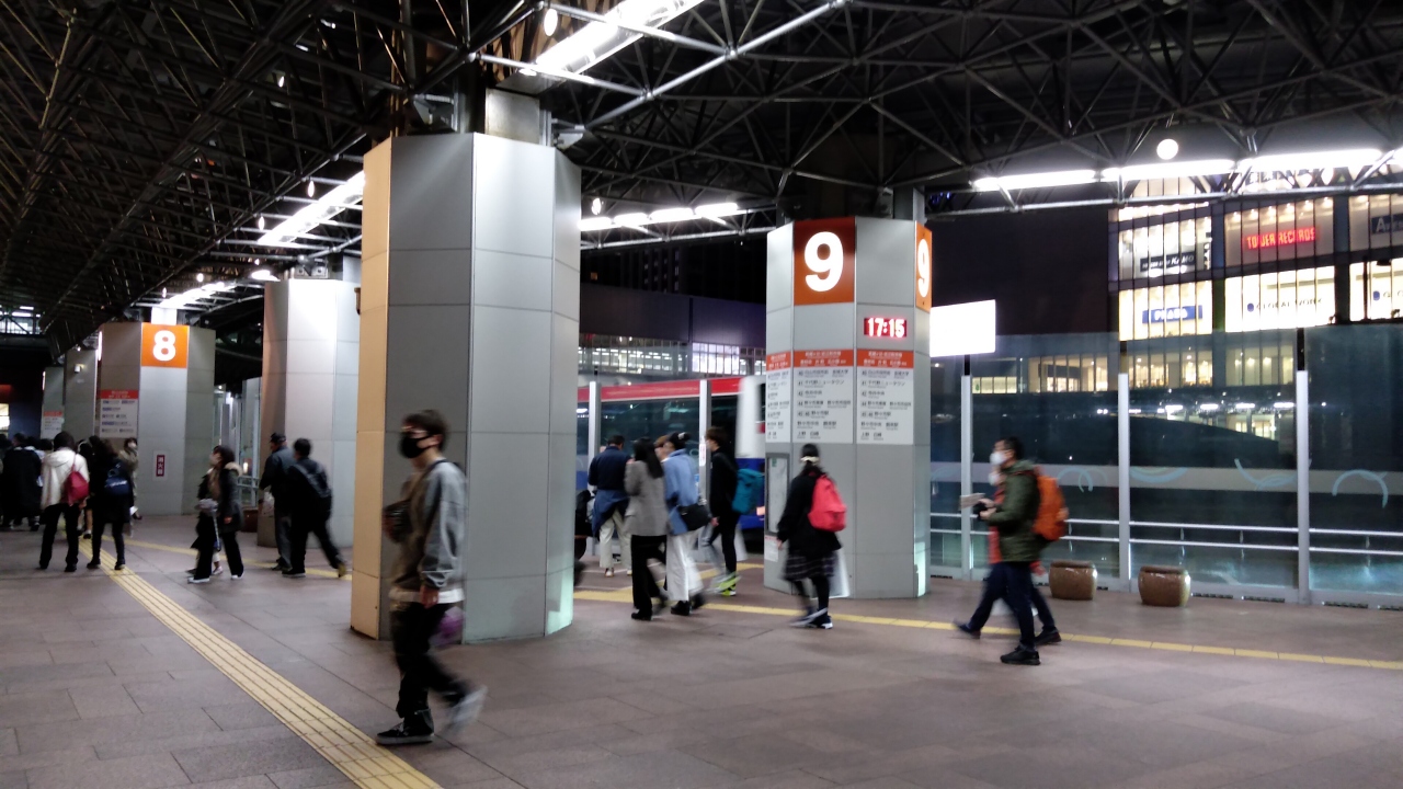 金沢に滞在中こちらのバスターミナルを何度か利用しました。朝夕は通勤や通学の地元の人たち、昼間は観光の人を中心ににぎわっていました。観光の場合は100円で利用できるまちバスやふらっとバス、兼六園行きのバスや城下まちバスなどが便利です。