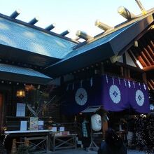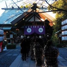 1月下旬の訪問だったからか、境内は初詣客などでかなりの賑わい。参拝入口と出口を分けて対応していた。本殿は立派なつくりで、近代的な雰囲気もあり、都会の中にマッチした神社になっていた。