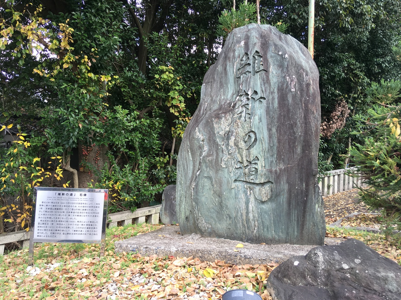 京都の東山にある道の名前です。清水寺へ行く途中、二年坂に入る手前に大きな鳥居があるのですが、その鳥居をくぐって、京都霊山護国神社に続く坂が維新の道と呼ばれています。
