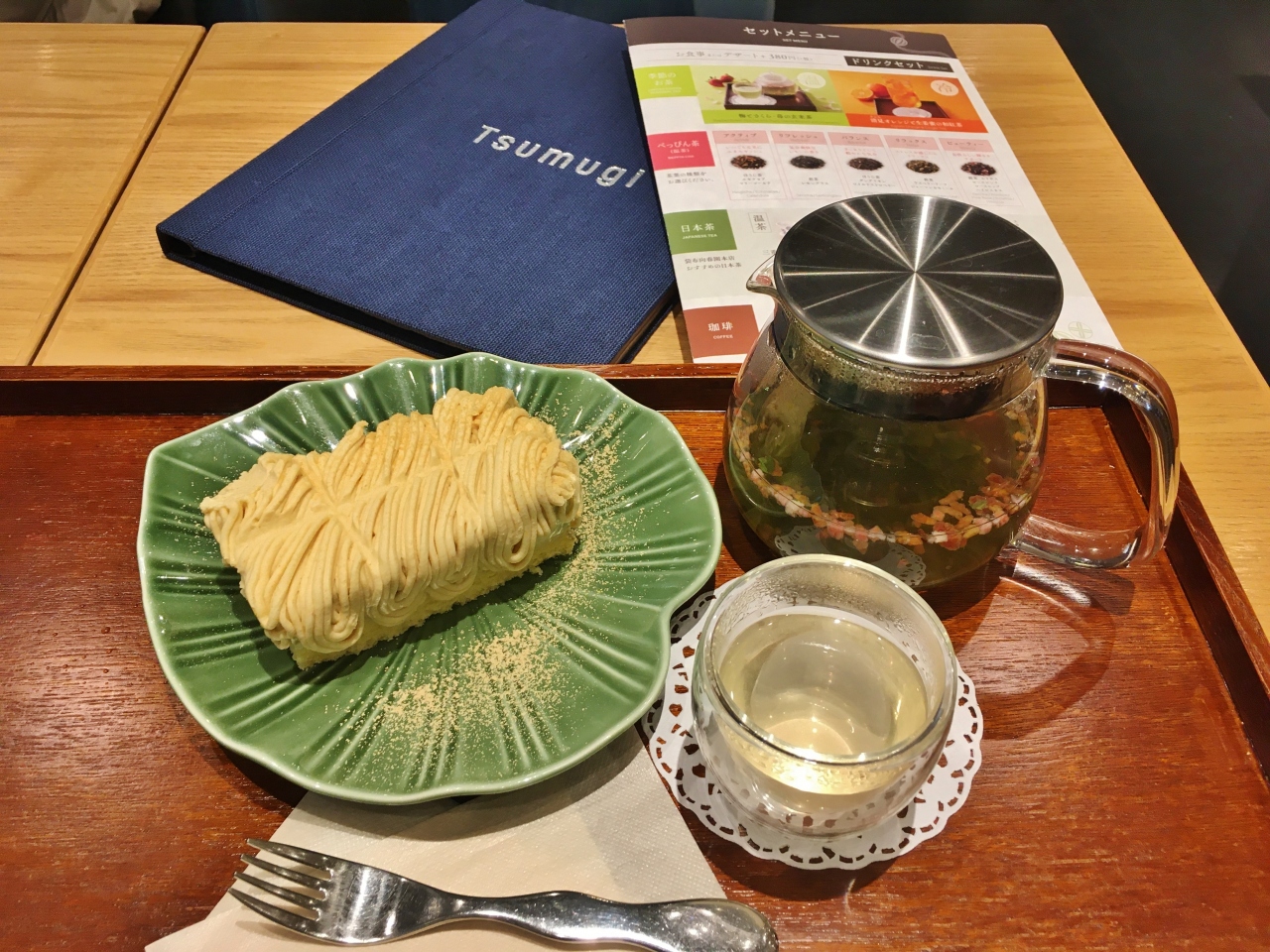 あべのハルカス近鉄本店のウィング館3.5階にあります。ランチ後のカフェで利用しようとお店に着くと満席、1組だけだったのでそのまま並ぶとほどなく店内へ入れました。思った以上に広く座席間隔も結構ゆったり、内装も藍染が使用された和風の空間で落ち着きます。新型コロナの影響か中央にある向かい合った長テーブル席は使用されていませんでした。モンブランケーキと季節のお茶、梅と桜・苺の玄米茶を注文しました。ケーキはオリジナル風で中にほうじ茶クリームが詰め込まれ、上からかかったきな粉の風味が美味しかったです。お茶の種類も豊富で店員さんに相談すると、とても丁寧に答えて下さいました。お会計では美術館の半券割引の表示を見つけて少しお得になりました。