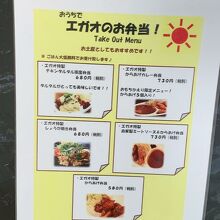 〈おうちでエガオのお弁当〉メニューもいろいろあるので テイクアウトもいいですね。