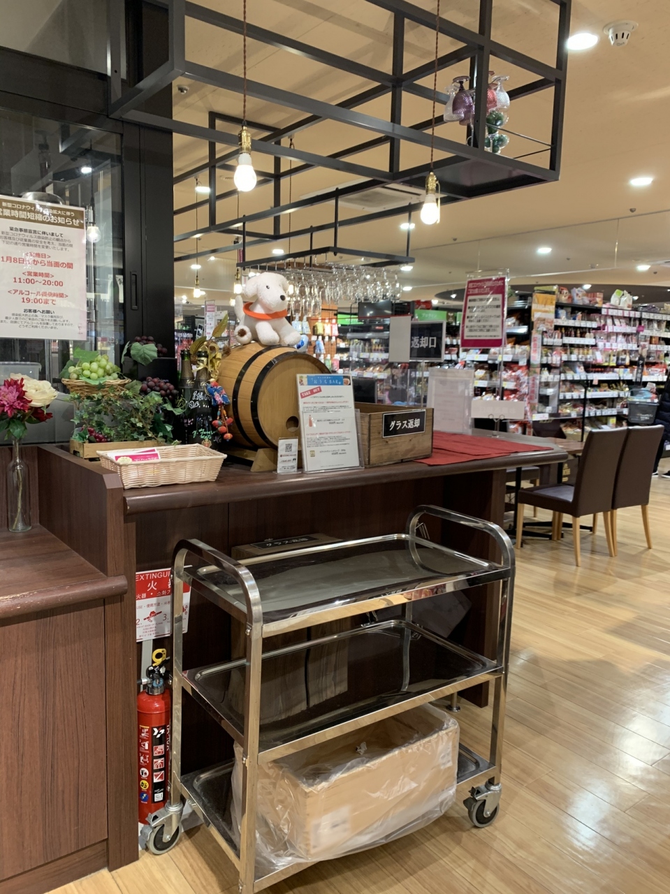 御嶽山駅前のイオンスタイル2階にあります。品川シーサイドのイオンスタイルに入っているワインバーをイメージしていましたが、暗くて狭く、フードコートに近い。ゆっくり食事をする雰囲気ではなさそうだったので、入りませんでした。