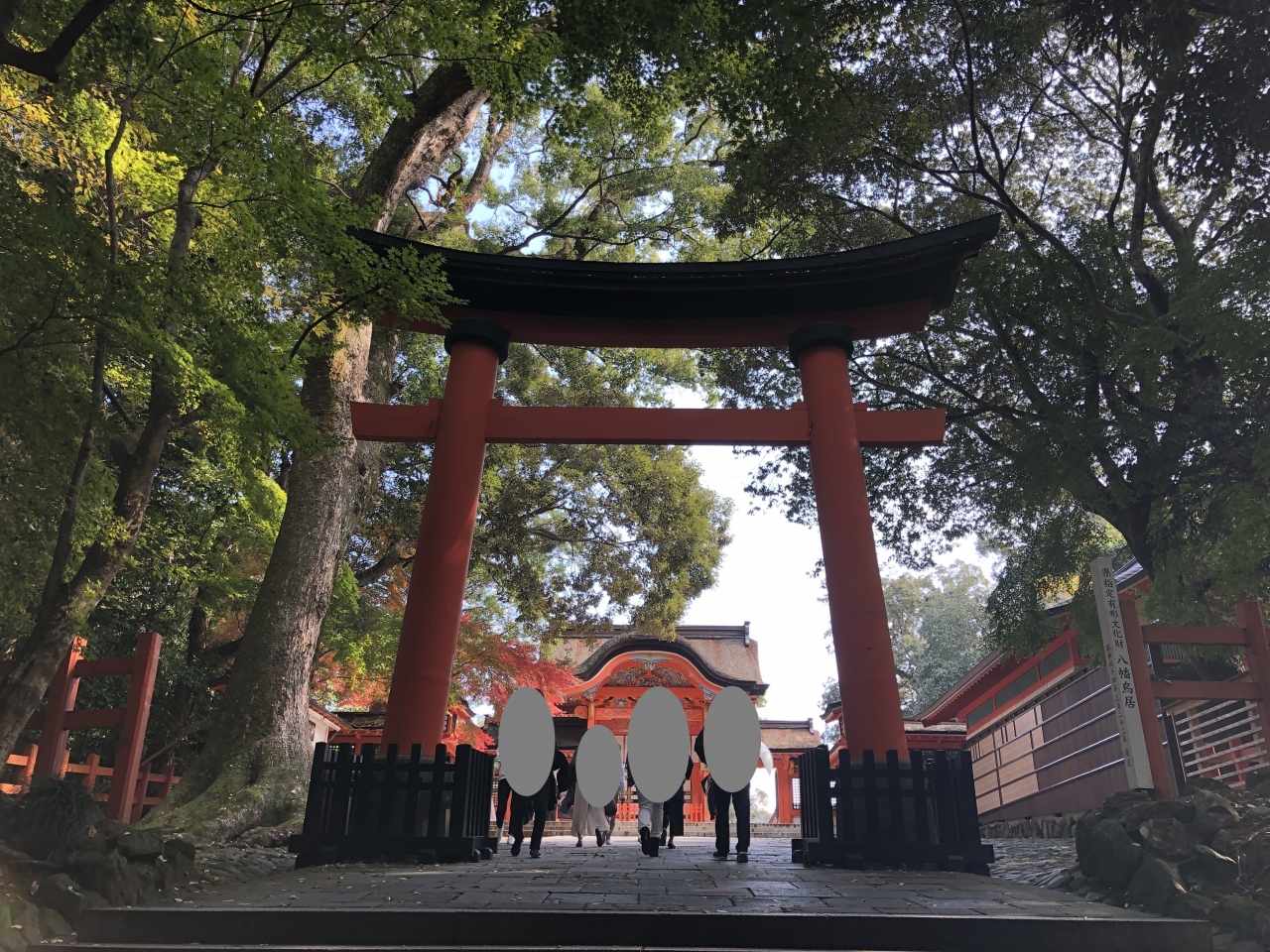 宇佐神宮の西大門のそばにある大きな鳥居です。宇佐古来の形式だというつくりで、今度から神社に行くときは鳥居の形も気をつけて見てみようと思いました。堂々としたたたずまいの鳥居ごしに西大門が見え、とてもきれいでした。