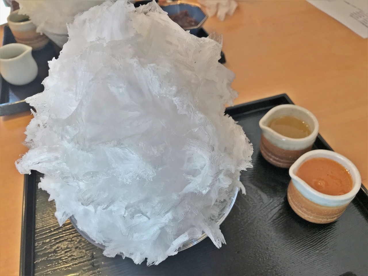 阿左美冷蔵のかき氷は、冷たいのに口の中ではほろりと溶けて泡雪のように消えていきます。