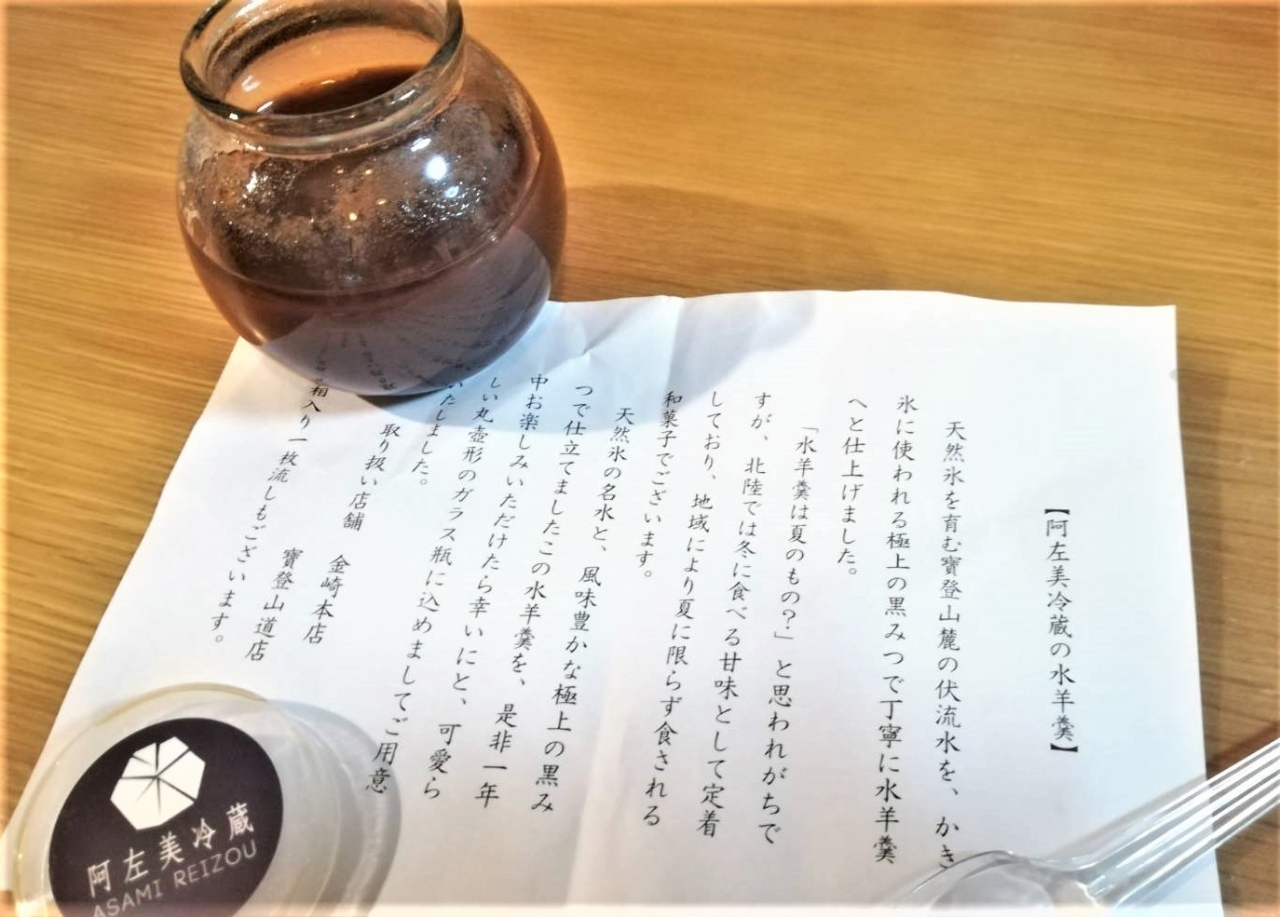 天然のものや自然の素材を生かしたシロップばかりで、どれもお勧めですが、阿左美冷蔵 寶登山道店での冬のお勧めと言えば寶登山道店の限定商品である”柿と柚子のかき氷”で、干し柿をペーストにしたシロップと柚子のシロップは絶品でした。