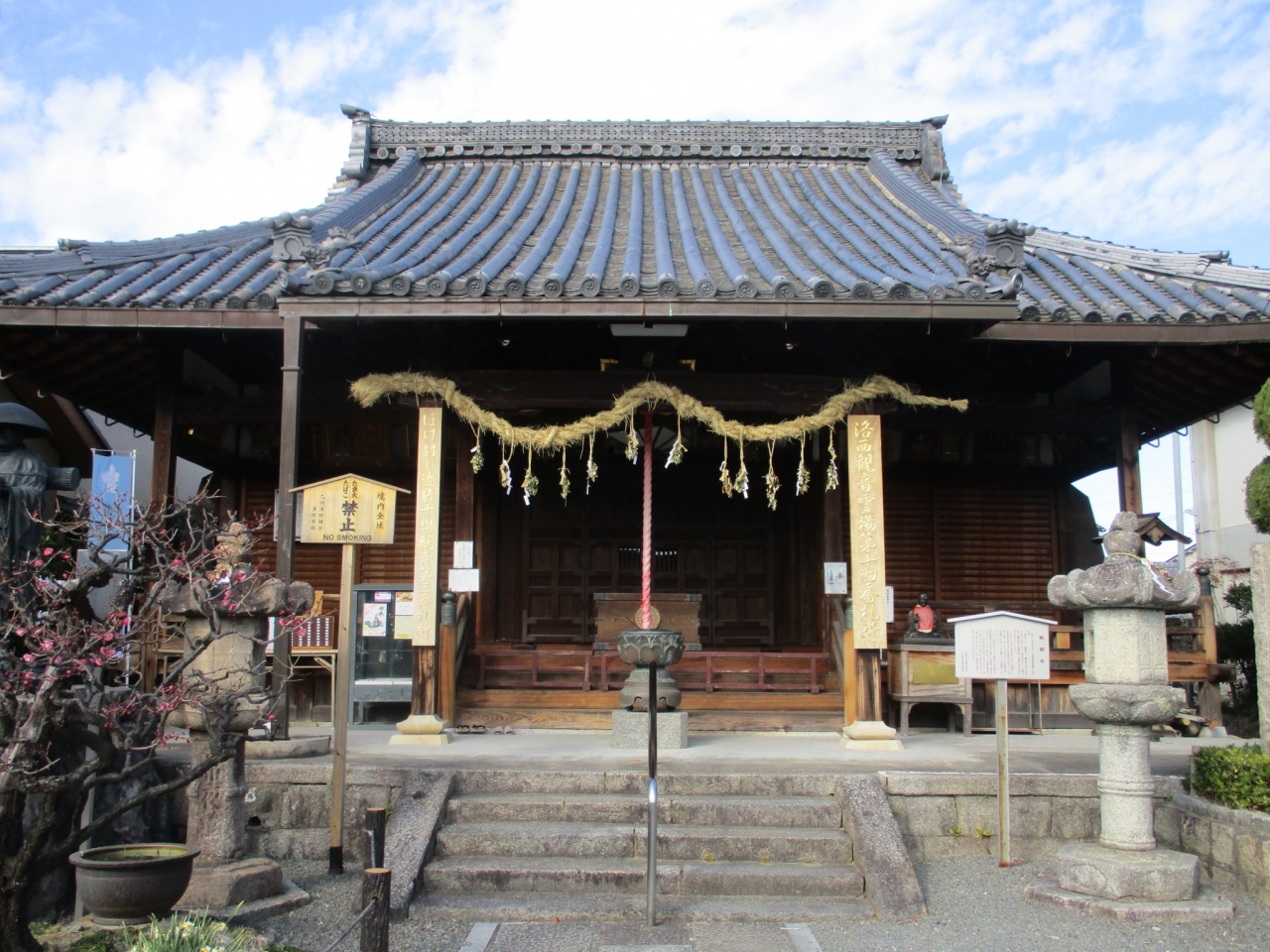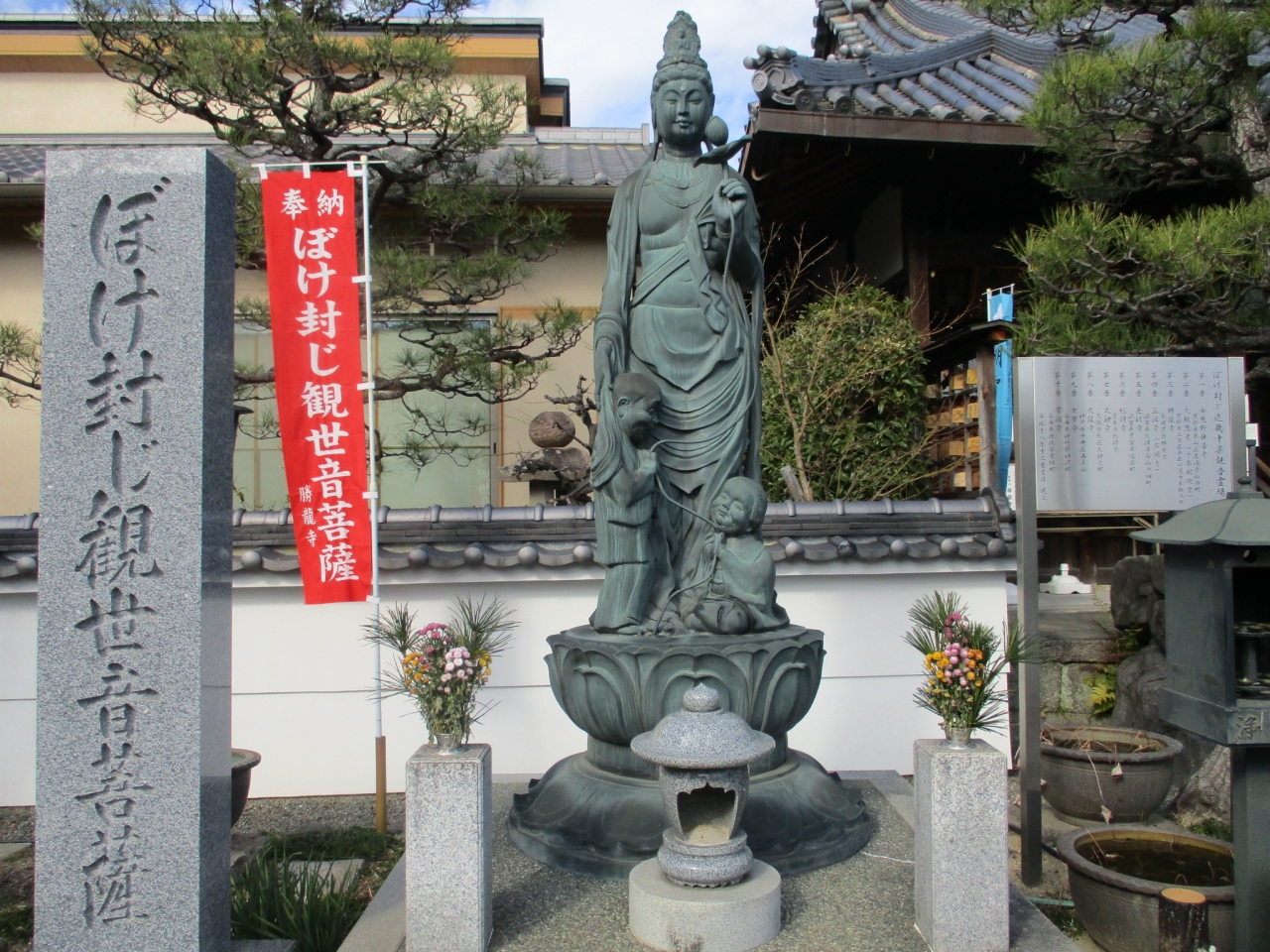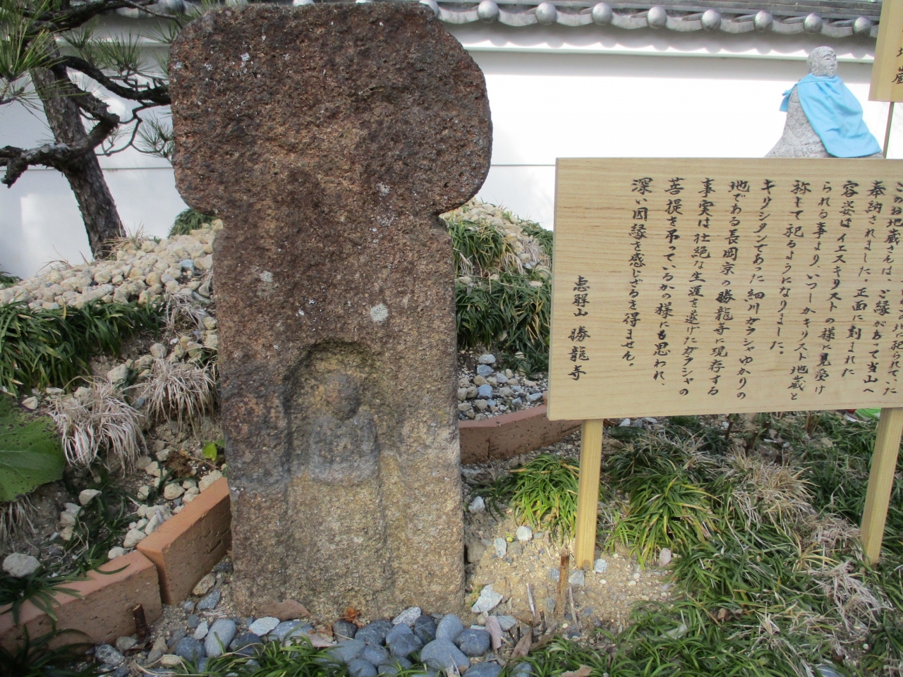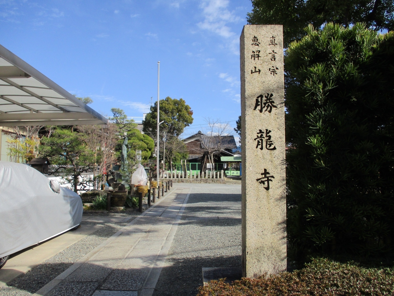 勝竜寺城跡公園から少し歩いたところにあります。途中には数か所に道案内の看板があり、迷わず行くことができました。空海開基の勝運・ぼけ封じの寺です。寺名は青龍寺でしたが、大干ばつ、大飢饉の年に千観上人の祈祷で雨が降り、龍神に勝ったという意味から「勝龍寺」に改名されました。境内には「ぼけ封じ観世音菩薩」「勝竜寺のキリスト地蔵」「知恵地蔵」などがありました。