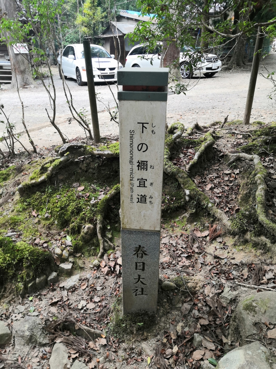 春日大社の二の鳥居から志賀直哉旧居方面にぬける小径です。もともとは、春日大社の神官たちが通った道のひとつで下の禰宜道(しものねぎみち)」と呼ばれていたそうで、看板にもそう書かれていました。志賀直哉旧居まで行くとまた時間がかかるので一部だけ歩くのもいいかも。
