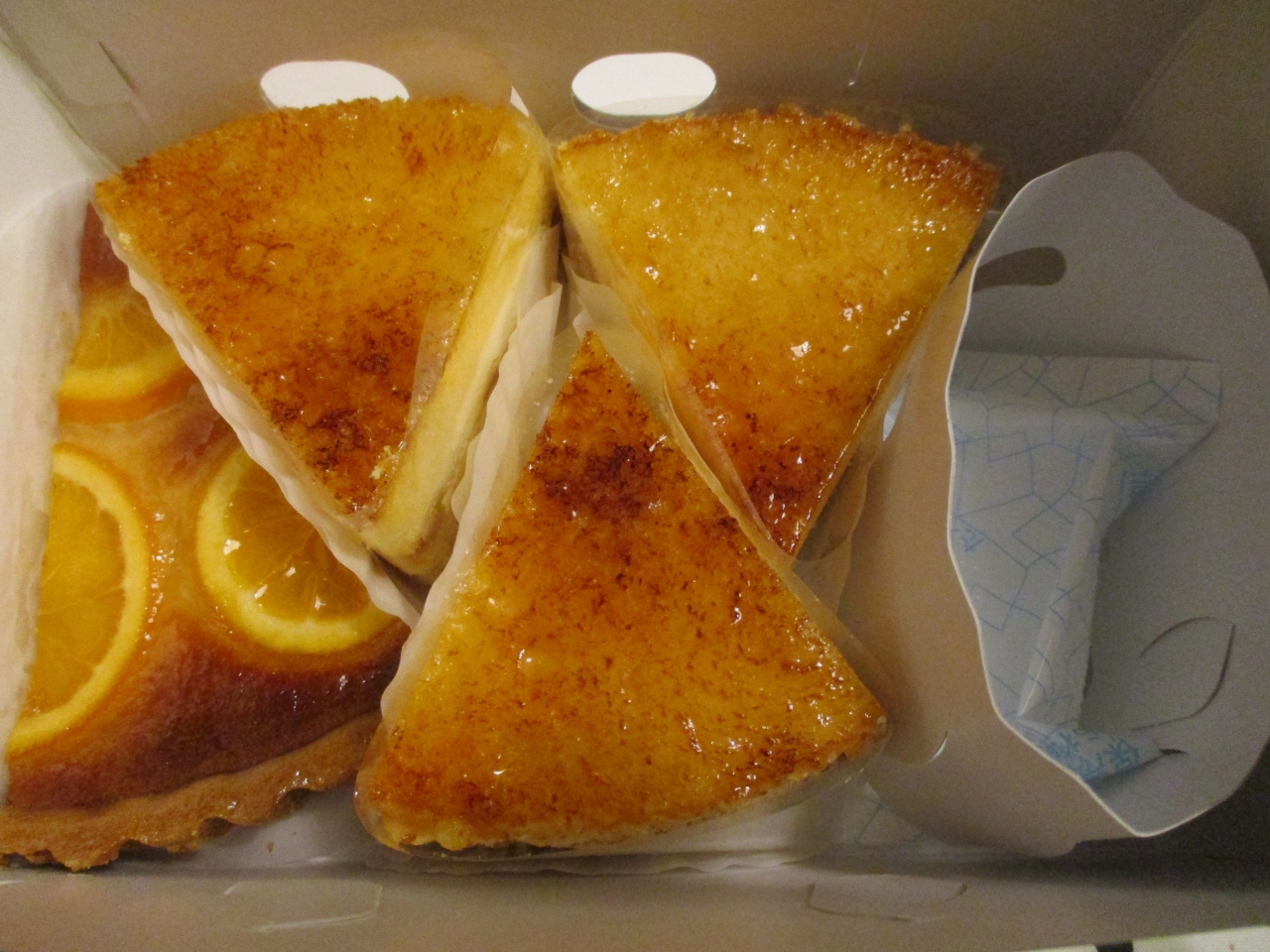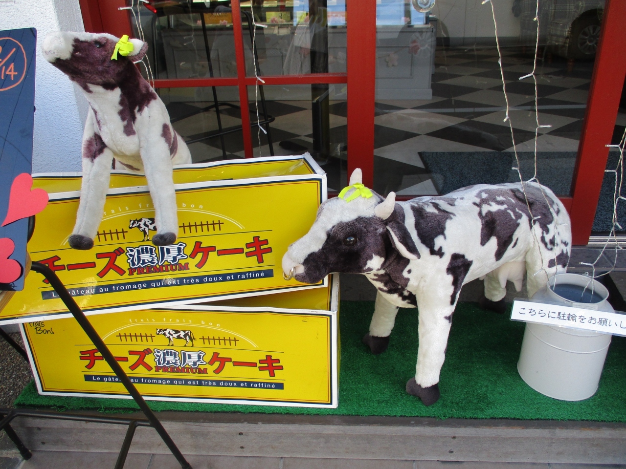 阪急長岡天神駅近くにあるケーキ屋さんです。お店の前の牛のオブジェが目印です。箱入りの濃厚チーズケーキがイチ押しのようで、迷ったのですが、「キャラメリゼ」と「オレンジタルト」を購入しました。お値段が比較的お安めなのがうれしいです。おいしかったです。