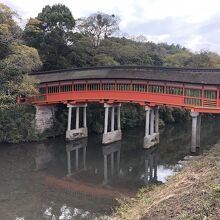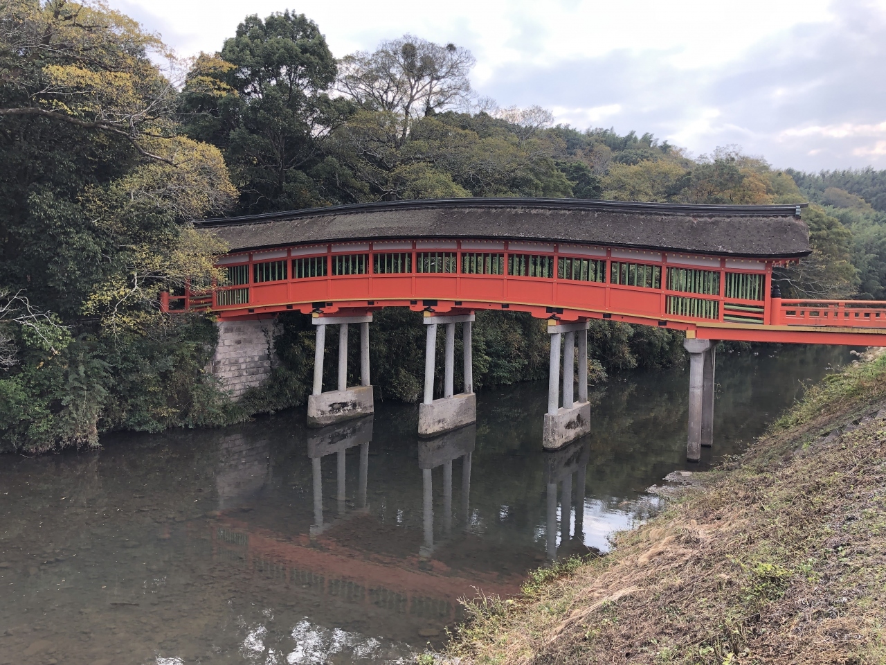 宇佐神宮にある屋根に覆われている橋です。10年に1度のお祭りのときだけ扉が開かれるため、渡ることはできませんが並行している橋を渡りながら見ることができました。このあたりは人も少なく、ゆっくりと川辺の風景を楽しみながら散策できました。