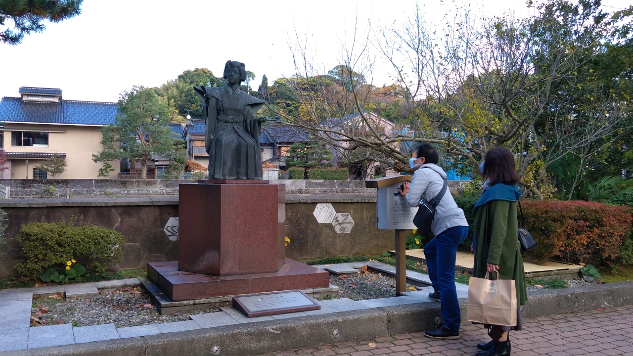 金沢に滞在中こちらの場所を訪れました。浅野川に架かる梅の橋近くの鏡花のみち沿いに有る碑と像です。泉鏡花の義血狭血にゆかり有る場所で、滝の白糸の像はスイッチを押すと水芸者から水が出る仕組みになっていました。