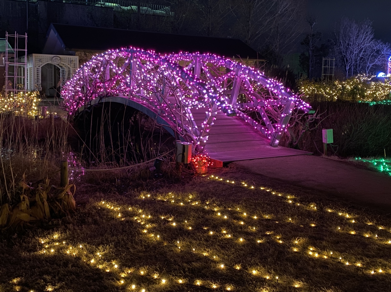 都市公園ではあるがイルミネーションイベントを行うには全体を照らす照明は少なく、それ故にイルミネーションが際立って見えるように感じるが、その反面着色LEDの発色のためにイベント開催時にはイングリッシュガーデンの特徴がわかり辛くなる感もあった。