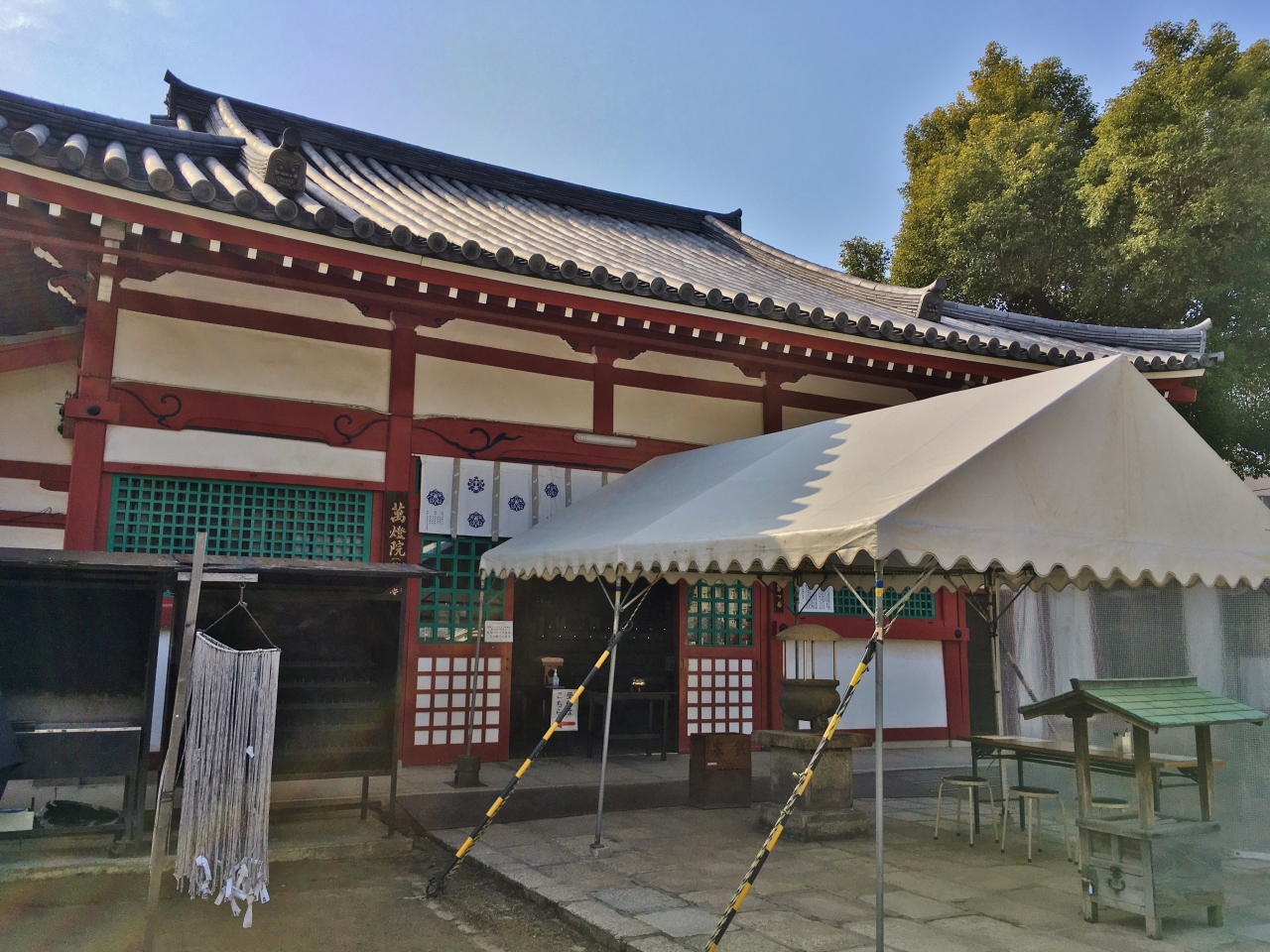 四天王寺の境内に入り西大門をくぐり右手の奥にあります。紙衣仏をお祀りしているため紙衣堂ともいい、無病息災、病気平癒のご祈祷で有名なお堂です。毎年10月10日には「万灯院衣替」という法要が行われ、多くの信者さんで賑わいます。「紙衣のお加持」と呼ばれるお加持を3年続けて受けると、病気や臨終の時でも人に不浄の世話をかけないとの言い伝えがあるそうです。