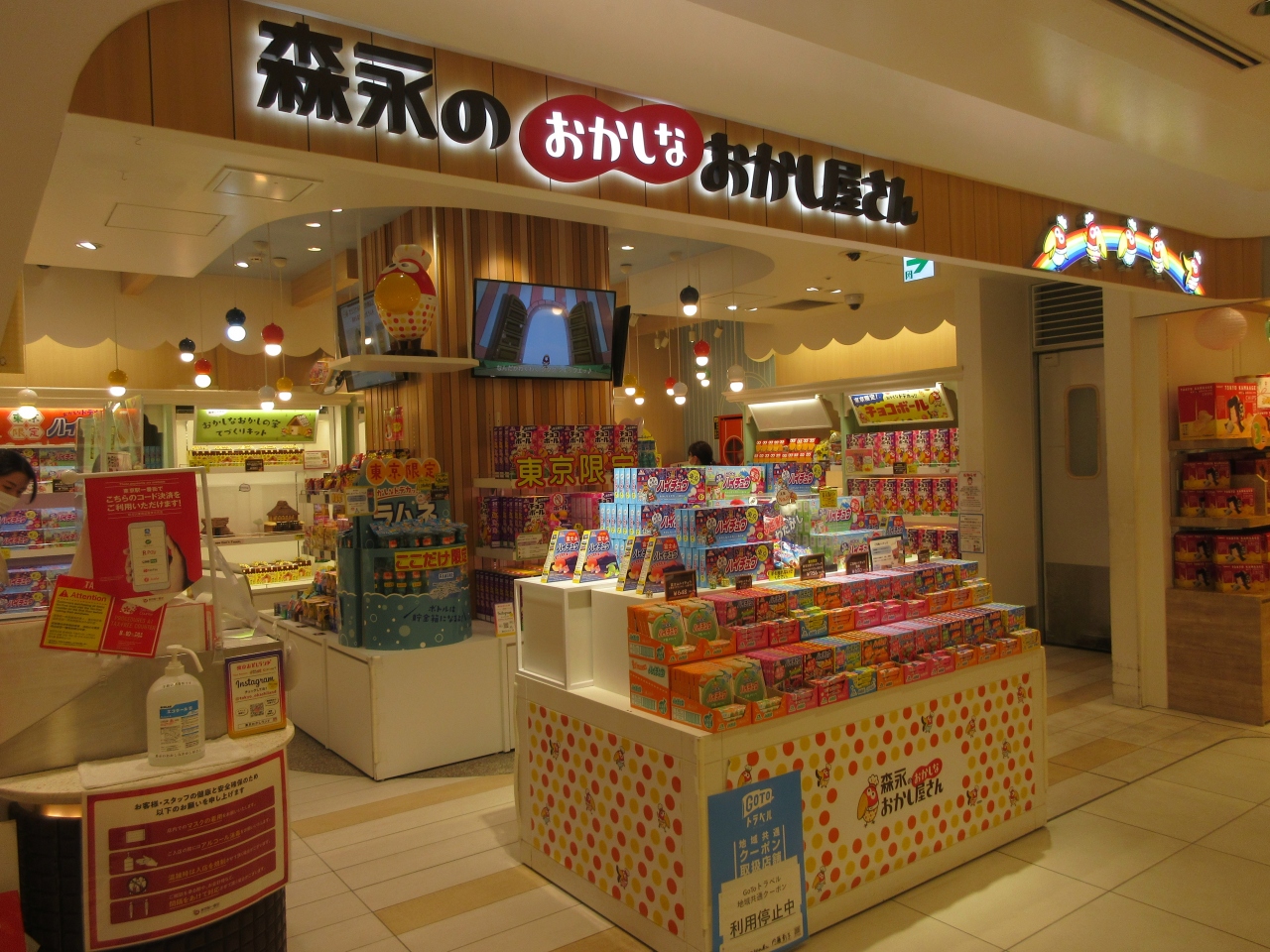 八重洲中央口改札を出て、地下へ降りていく階段の先にある東京おかしランド内にあります。ご当地ハイチュウ各種、チョコボールやキャラメルなど森永の人気商品が並んでいます。ビスケットやチョコレートやキャラメルを使って作られた家や建物が店の奥に展示されていました。子供でも作れるようなキット(お菓子)が入っているかわいらしいおかしなおかしの家が気に入りました。ブロックが好きな孫のために買いました。子供は体温が高いからチョコレートは気を付けて扱わないといけないなと思いました。子供の夢が実現するキットは面白いです。