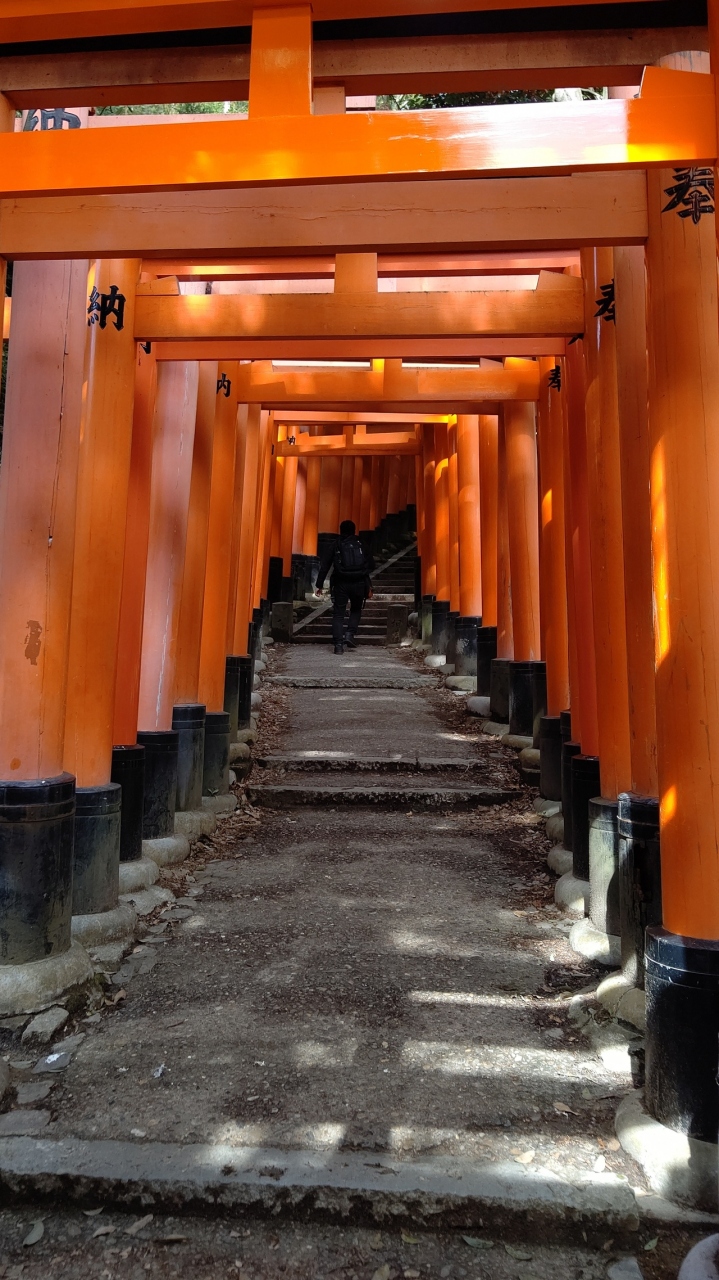 初めて訪れましたが、思っていたよりかなりハードでした。なんとか山頂まで登りましたが1時間位登りっぱなしでした。千本鳥居は隙間なくぎっしりと並んでおり写真等でみたまんまで感動しました。鳥居ひとつひとつに個人や会社名が刻まれており、登りの時は角度的に見にくいですが、下りの時に見ながら下りると知っている有名企業の名前等もあり面白かったです。