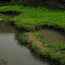 本場奄美大島紬泥染公園は、名瀬市街から南へ向かって車で15分ほどのところにあります。染色や織物に興味があったので足を運びました。予約すると泥染めの体験もできるそうですが、今回は泥田の見学だけをしました。
