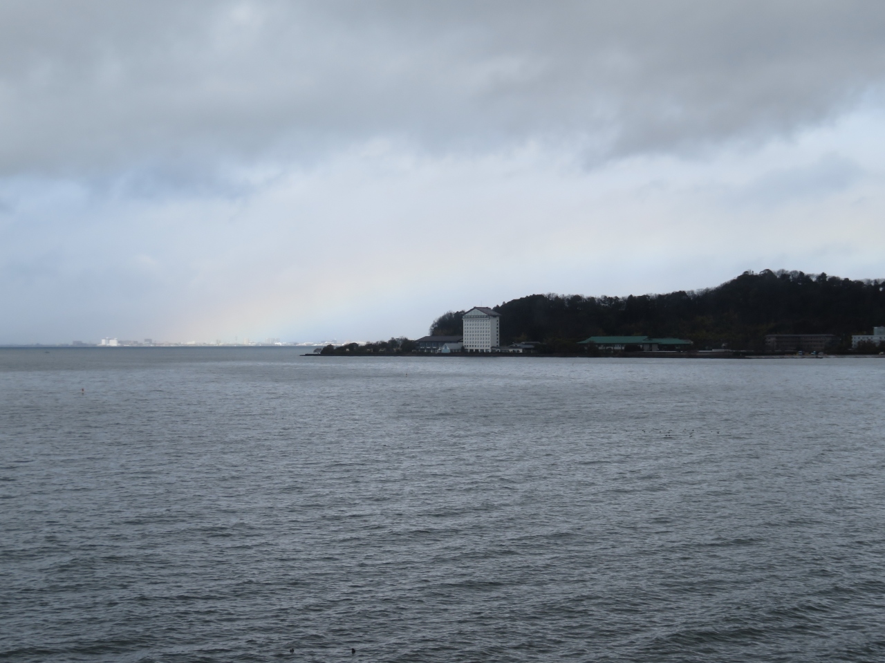 今回は荒天の日が多く、雨が強かったり、強い波が生じたりしていました。そんな雨の後虹が少しだけ出ていました。