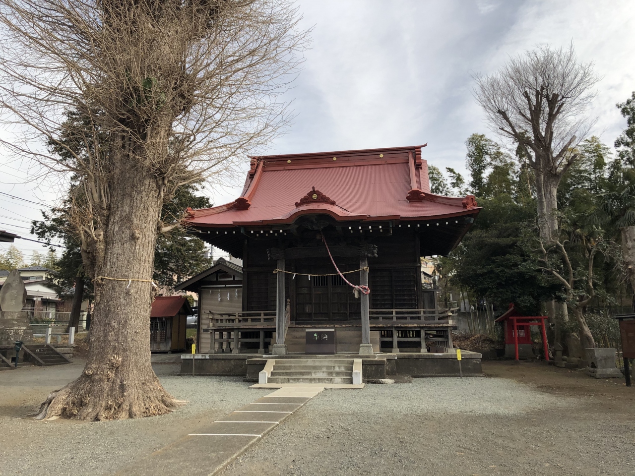 小田急線長後駅の西、上下4車線の大通り・用田バイパス(県道22号線)のすぐ近くにある神社です。創建時期は不明ですが、1664年に再建されたという記録が残っています。