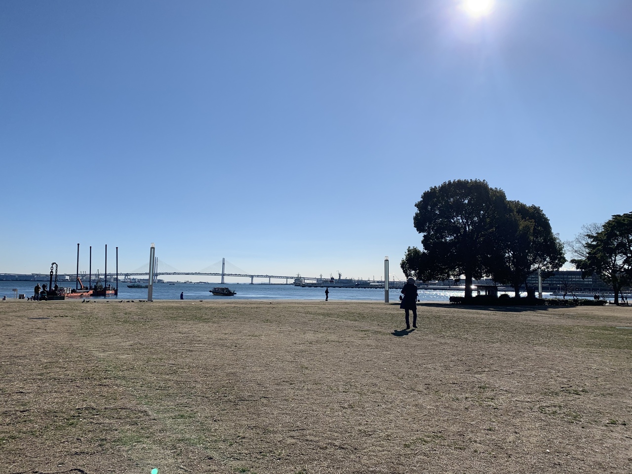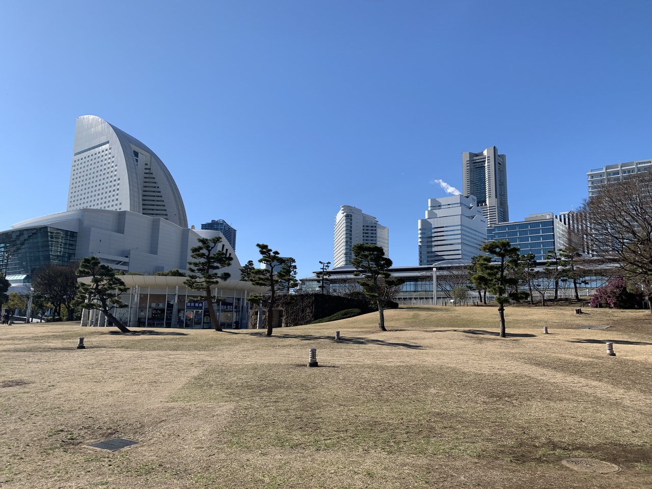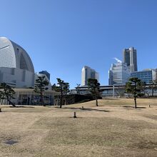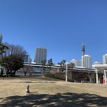遠くにビル群が見えて、公園自体は静かな雰囲気で落ち着きます。