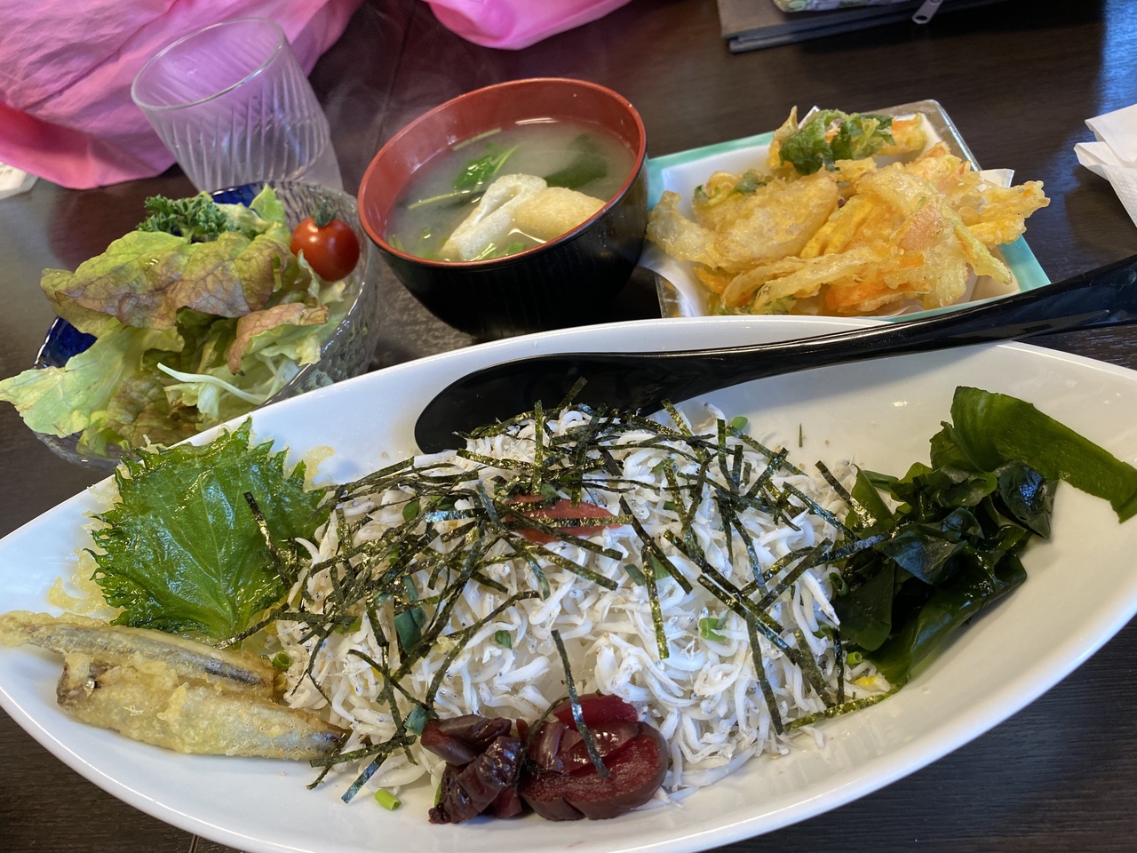腰越駅近くの、江ノ電車道走行区間に面した居酒屋さんです。この日は息子との小旅行でランチ利用。定番のしらす丼をいただぎした。しらすは間違いなしですが、副菜のかき揚げがなかなかの美味。息子と取り合いになりました笑