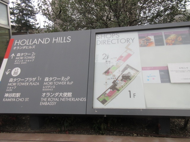 オランダ大使館は中になくて近接。2階のテラスが気持ちいいけど、店舗は2つだけ