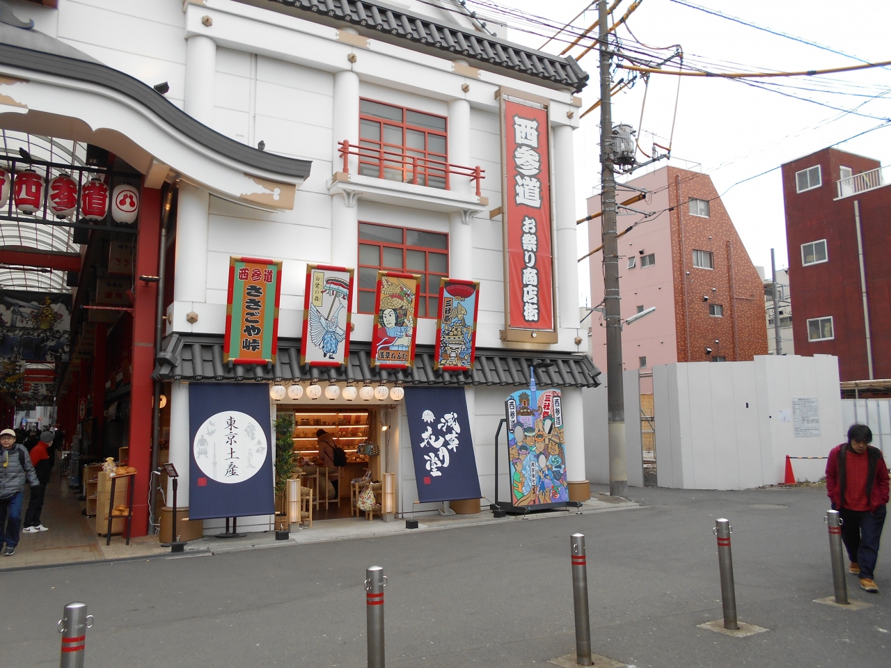 全長100メートル程でアーケードがあり、道が全面木道というユニークな商店街です。商店街は朱色を基調として統一されており、ユニークな店舗ぞろいです。祭礼用品を扱うばんび堂、いつでも金魚すくいができる浅草きんぎょ、刀剣や武具扱う一両屋、舞台用の小道具を扱う写楽小道具店、そして昭和遊技、浅草射的場などです。大きくはない商店街ですが、魅力がいっぱい詰まっています。