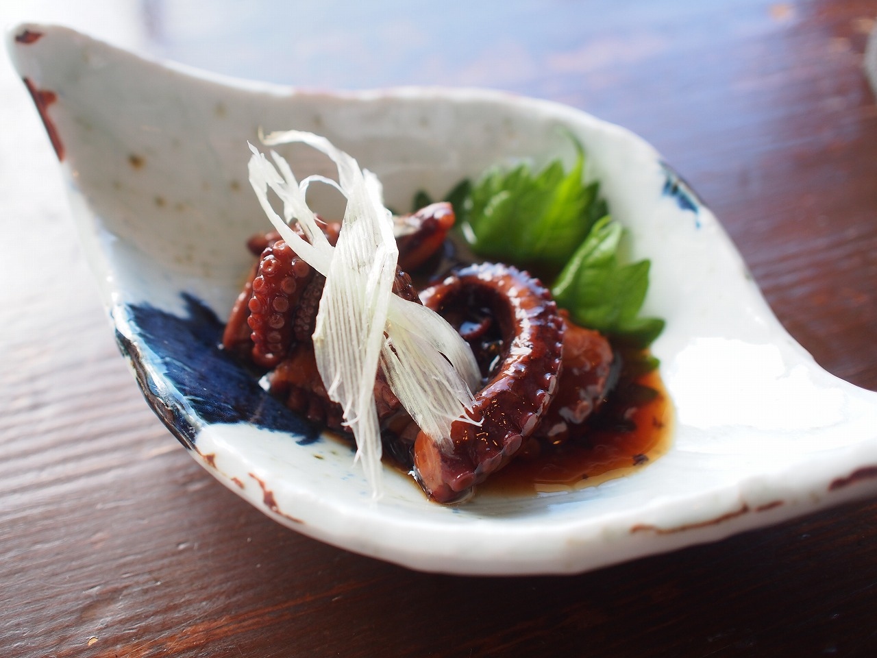 おつまみには明石たこの煮つけとたこのから揚げを食べました。