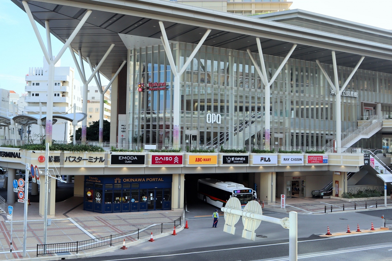 ゆいレール「旭橋駅」直結の複合施設「カフーナ旭橋A棟」には、県立図書館・観光案内所・那覇オーパなどが入っていて、1階が那覇バスターミナルです。