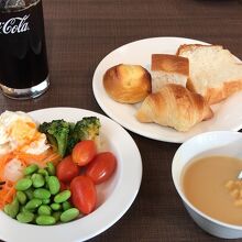 土曜日も日替わりランチがありました。1000円ほどでハンバーグが食べられ、サラダバーも込でお得でした。パンも食べ放題で、このパンがどれも美味しかったです。