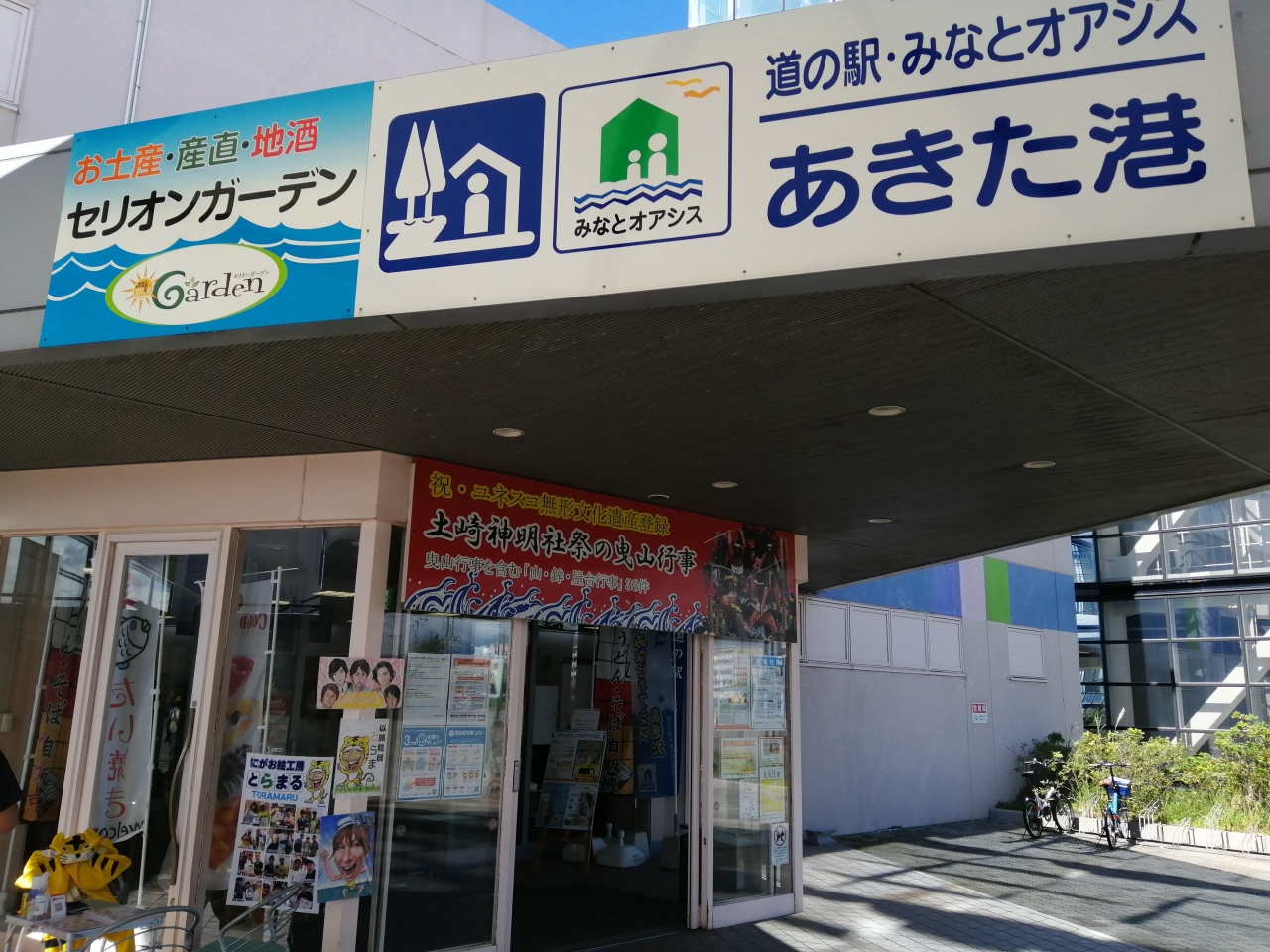 秋田港近くの大きな道の駅で、タワーや室内緑地公園が併設されています。