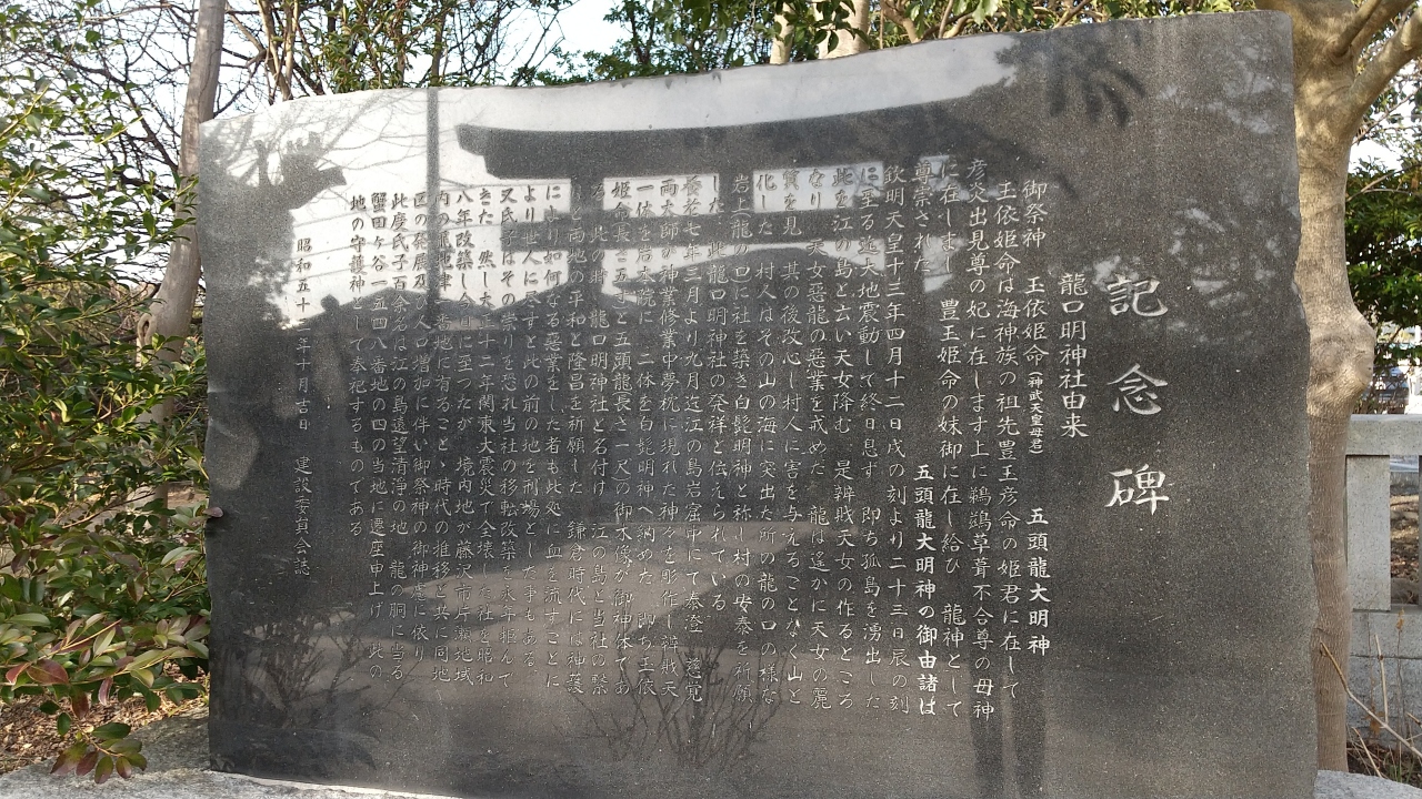 2021年2月の土曜昼過ぎに参拝しました。湘南モノレール西鎌倉駅から徒歩7分ほどの住宅街にある神社です。道を挟んですぐ隣には「経六稲荷 」もあります。御祭神は「玉依姫命」となります。龍口明神社は元々は湘南モノレール「湘南江の島駅」横の龍口寺のそばにあったのですが、昭和53年頃に現在の場所に移転しているようです。閑静な住宅街の中にとても大きな神社があって驚きました。ちなみにですが、現在も龍口寺には龍口明神社の跡が残っています。