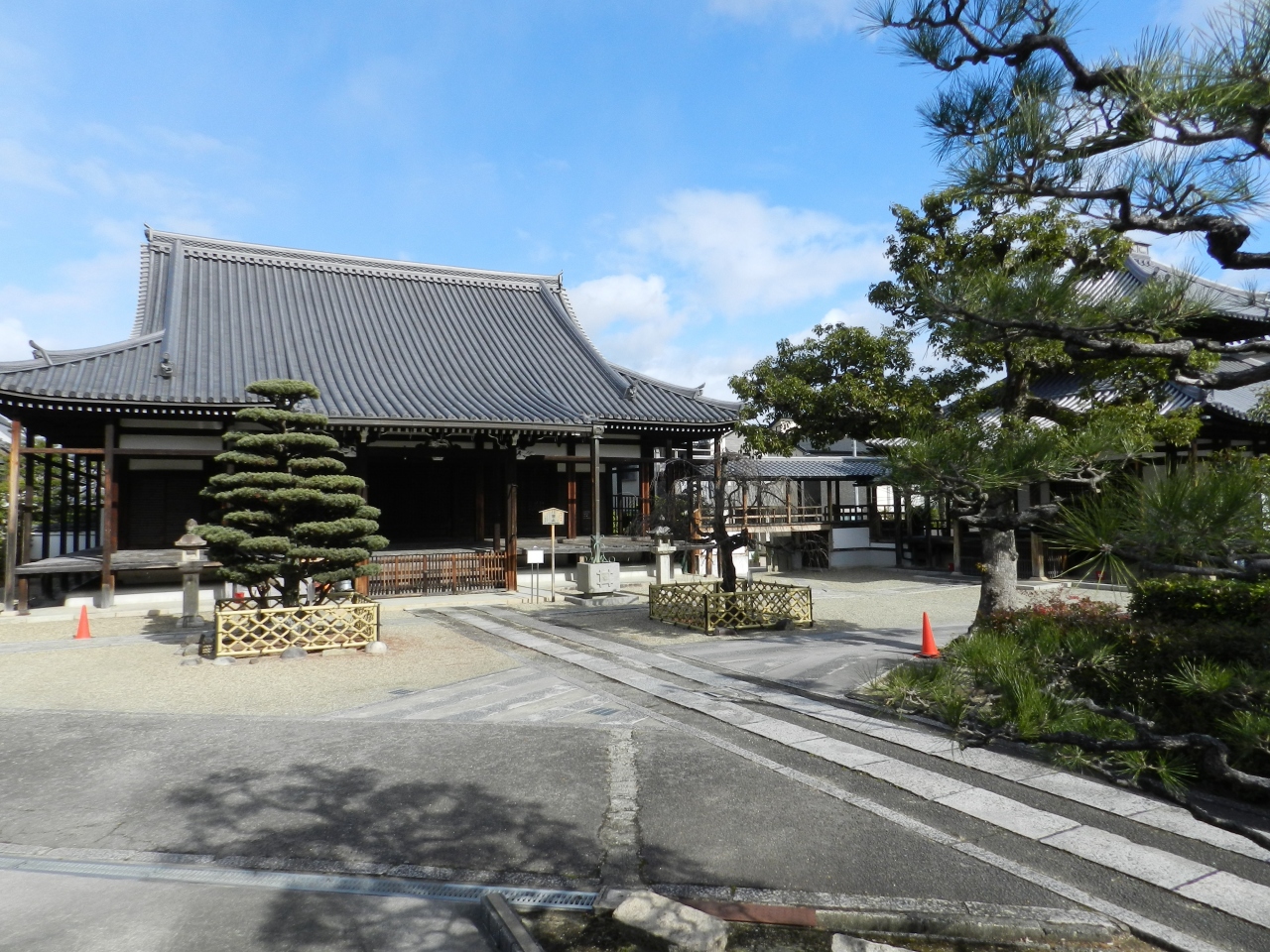 京都府向日市鶏冠井町(かいでちょう)大極殿に建つ日蓮宗寺院。元は真言時と称する真言宗寺院であったが鎌倉時代末の徳治2年(1307)に実賢律師が日像と法論の後、日蓮宗に改宗し、真経寺と改称したようです。承応3年(1654)真経寺は南北2寺に分割して現在に至ります。大極殿跡近くに建つ古刹です。