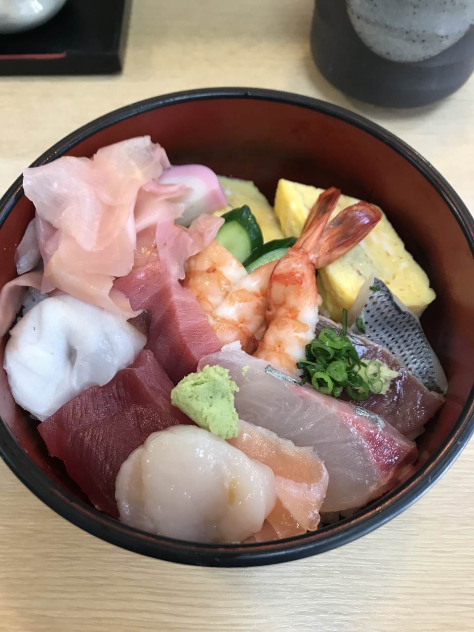 海鮮丼は、刺身が豊富、一緒につく味噌汁は海老の頭でとった出汁が出ていて非常に美味し方tです。