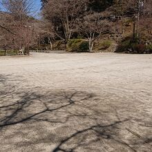 香嵐渓巴川沿いの、足助屋敷付近に立地する広場です。日によっては、お店が出店したり、イベントが開催されたりするとのことです。もっとも、訪問したひは、2月の午前中ということもあり、広場では特に何も行われておらず、広場内は、数える程度の人出でした。