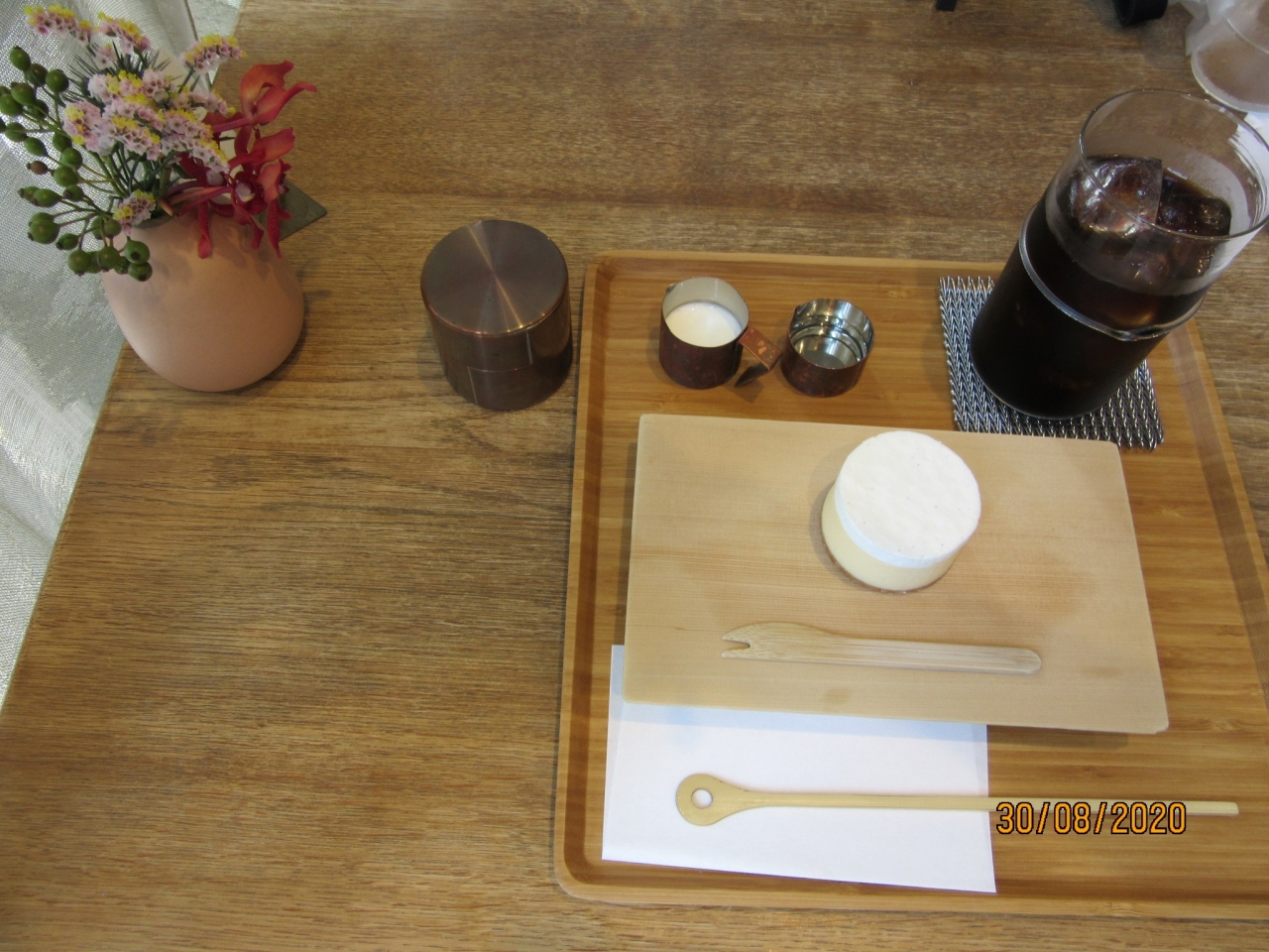 1階がショップとCafeになっていてとてもお洒落な雰囲気なので、アイスコーヒーとチーズケーキセット1,350円を注文。2人と4人用テーブルの小さな店内だが、雰囲気が良く