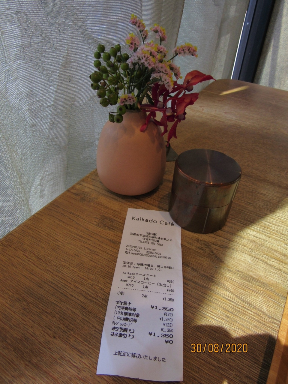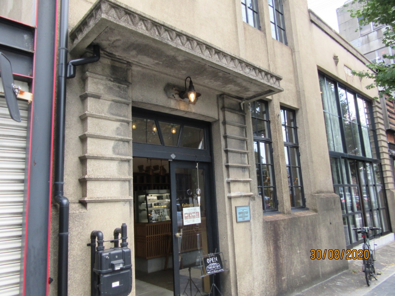 鴨川を出町柳から川沿いに散策し、5条で出て京都駅に向かう途中の大通りの左側に歴史を感じさせる建造物がありCafeになっており入店。【Kaikado Cafe】となっていた。