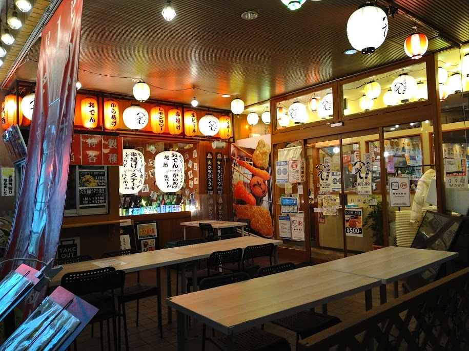 市電通りに面した大衆立飲み居酒屋ですがいつのまにかイスがたくさん出現していました。