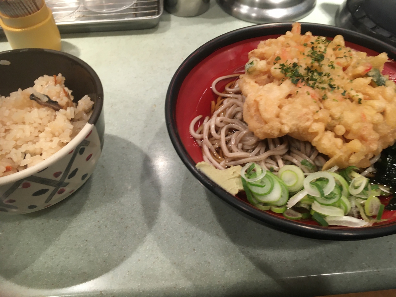 11イマサの向かいにあります。先払いの食券制で、現金のみです。席は立ちのみです。提供は早く、冷やしでも値段は同じです。そばとつゆはおいしかったですが、天ぷらは衣が多めで残念でした。炊き込みご飯は普通です。