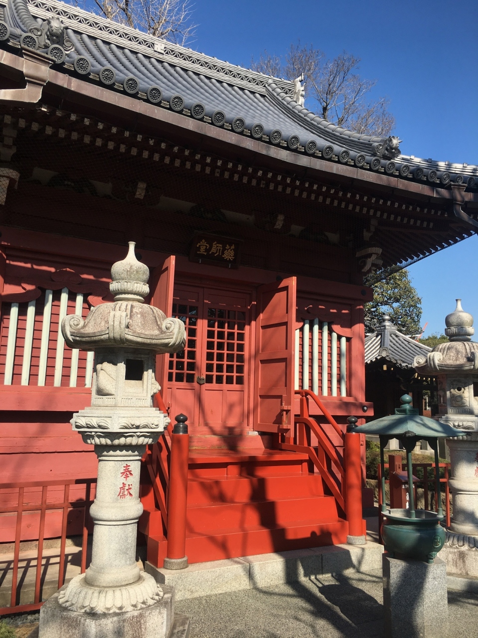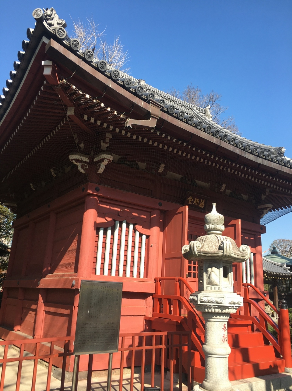 浅草寺境内にあり、中規模の建物で赤い色が目立つ外観でした。左右には灯籠があり、お賽銭箱が小さくポストのような感じでした。扉は二重で奥の扉は鍵がかかっていました。徳川家光の時代の観音堂で平成6年に今の場所に移りました。