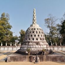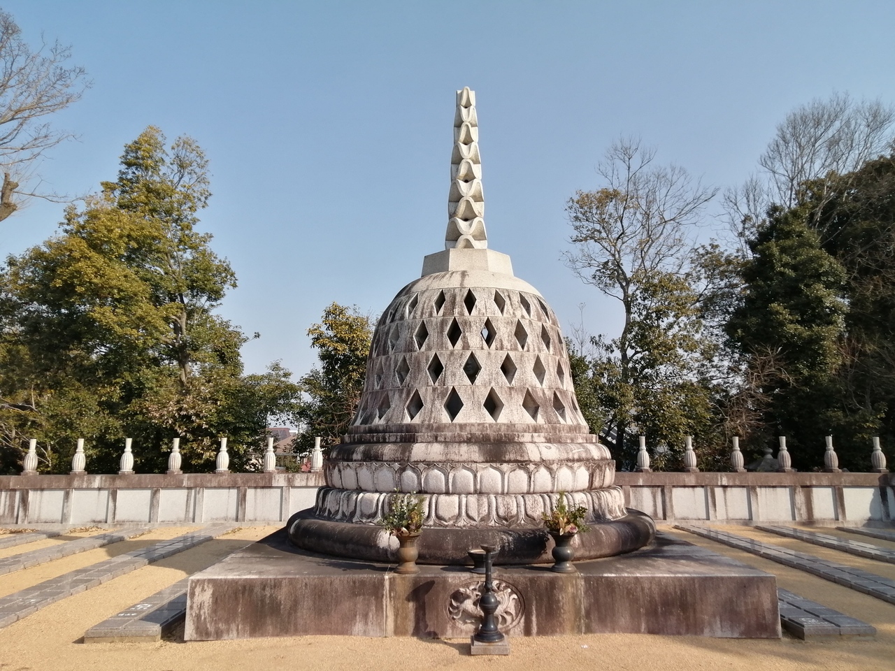 本堂横の三重塔の建つ墓地の中の階段を登って行くと、突き当りは舎利殿。由緒あるお寺にはやや不釣り合いな現代風なデザインです。舎利殿の中央には見覚えのある仏舎利塔が…。仏舎利塔とは釈迦の遺骨や灰(仏舎利)が納められた塔のこと(実際には経典などが納められているようですが)。後でググってみたらやっぱりそうでした。かつて訪れたインドネシアのジャワ島にあるボロブドゥールの仏舎利塔にそっくり。意外なところで意外な物に出会えました。