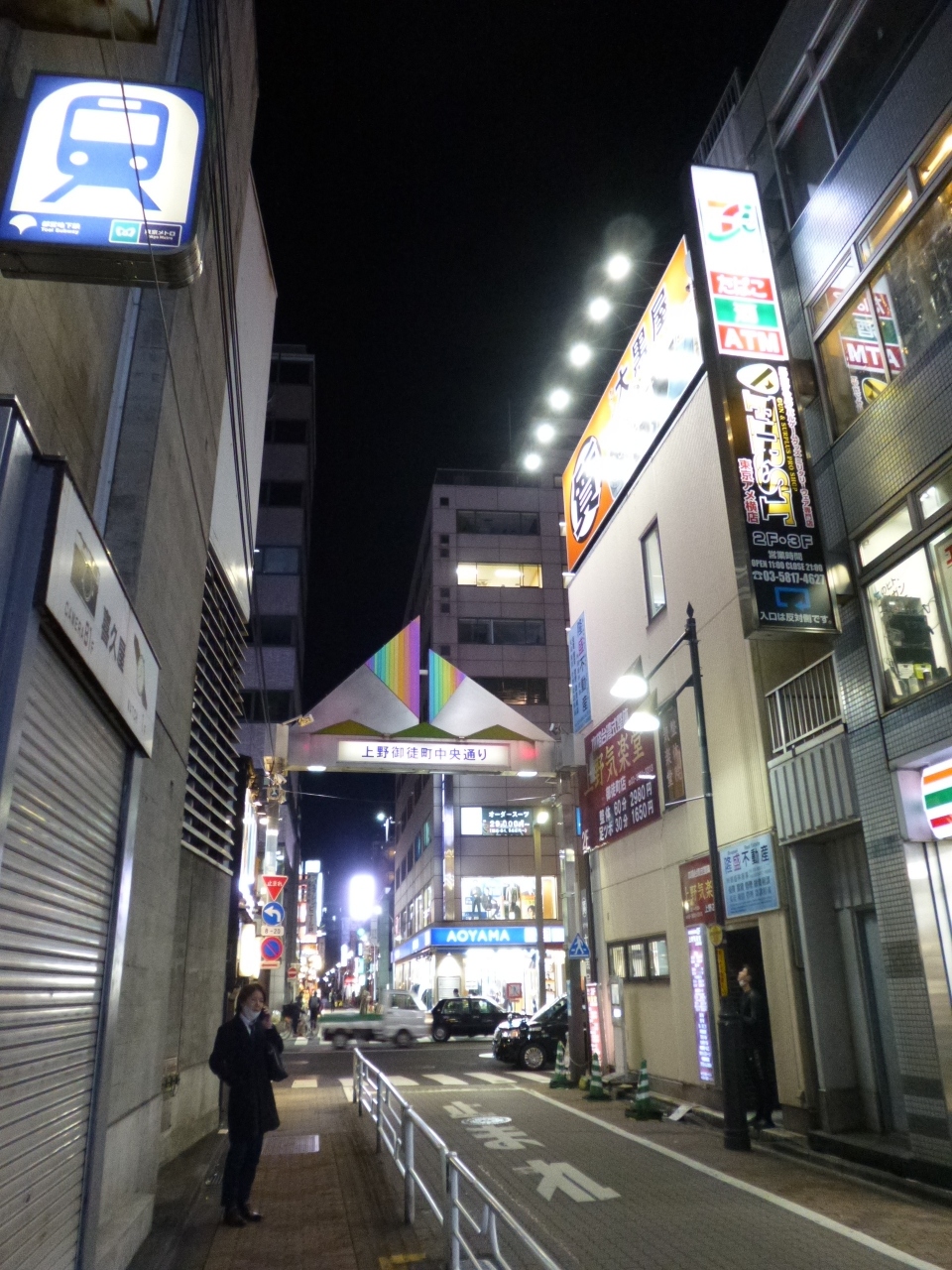 JRの線路に沿うように、JR上野駅と御徒町駅間を結ぶ約400mの裏通りが上野御徒町中央通りです。小規模な飲食店やショップが軒を連ねていますが、新型コロナの影響ゆえか、平日の午後7時前の人通りは少なかったです。すぐ脇を通るアメ横などに比べるとあまり特徴を感じられない商店街です。