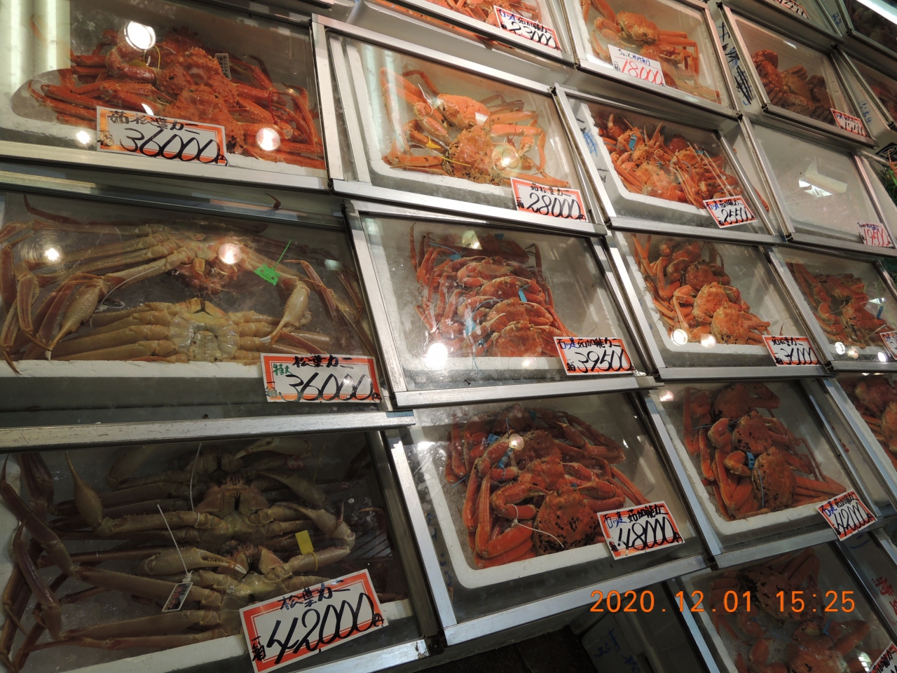JR金沢駅から貸自転車で数時間ぐるっと観光したのですが、近江町市場は徒歩でも行ける場所にあります。コロナ禍のGo to Travel を利用して旅行に行った12月初めの午後だったので市場の人出は凄く少なかったです。ここ特有の魚や野菜が並んでいて見て歩くだけでも楽しい場所です。