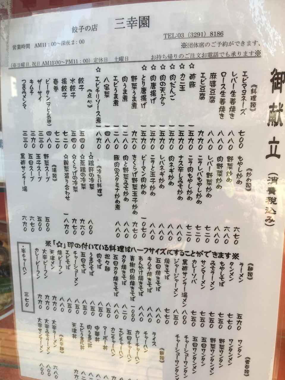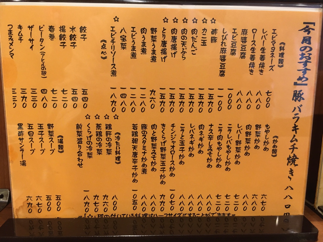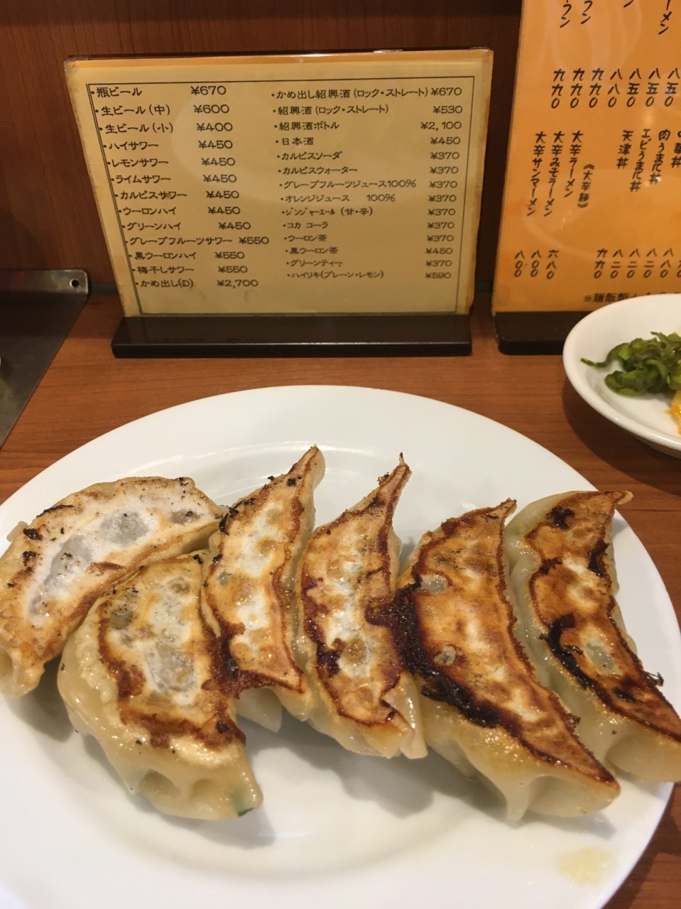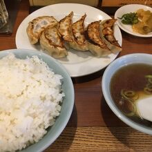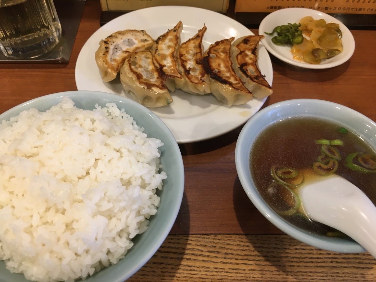 餃子の人気店でメニューが豊富でしたが餃子定食700円を注文。1階と2階があり1階のカウンター席で食べました。満席にも関わらず3分ぐらいで餃子、ライス、スープ、ザーサイが出てきました。餃子の皮が柔らかくて食べやすく中から汁が湧き出てくるような味わいでした。