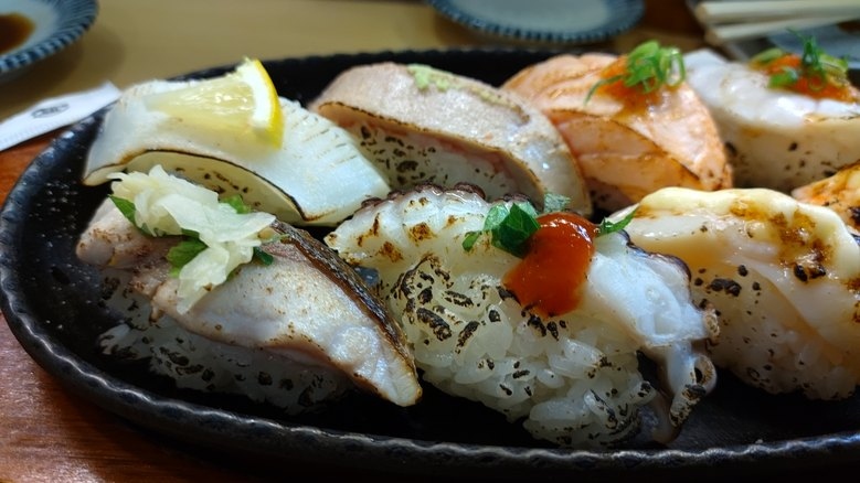 大阪の特徴の一つに安い鮨やがおおいことが挙げられます。黒門市場が近いせいか、良質な鮨が安価で食べられますがここはその代表格です。名物は焼く鮨で8貫の炙り鮨が1400円で食べられます。しかも税込み。その間にカウンターでお好みをにぎってもらい占めて2500円くらいと大満足でした