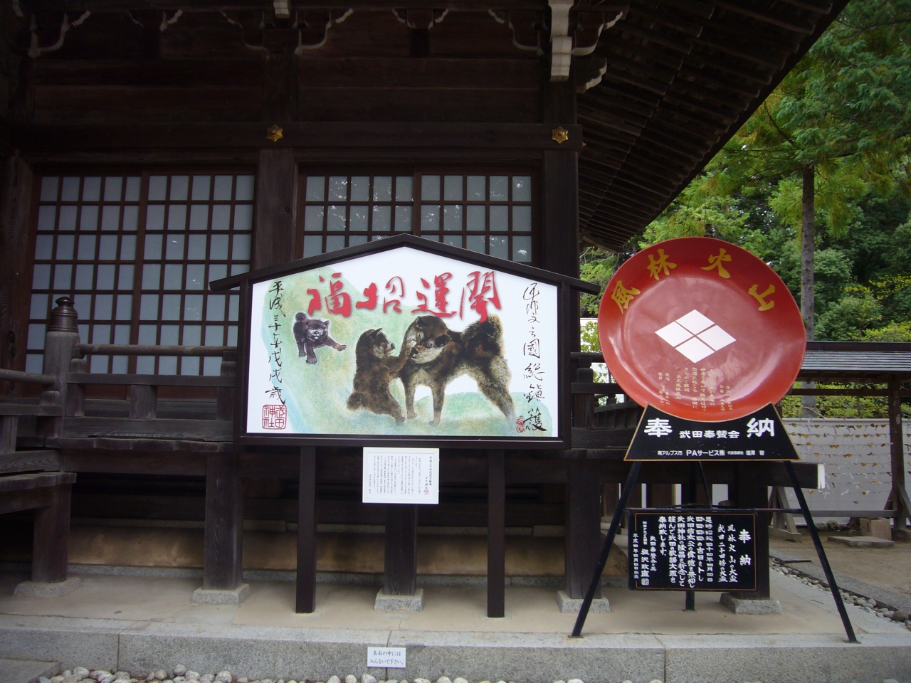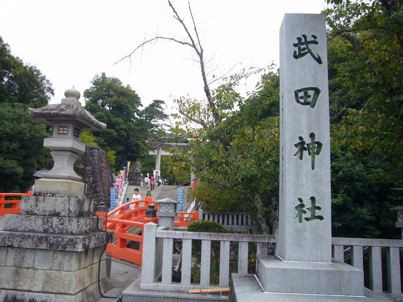 武田信玄を祀っている神社です。甲府駅からまっすぐ1本道ですが、歩くにはちょっと距離があります。境内は広く、能舞台や水琴窟などいろいろ見どころがあり、充実しています。宝物館には入場料が必要です。隣には史跡公園もあります。